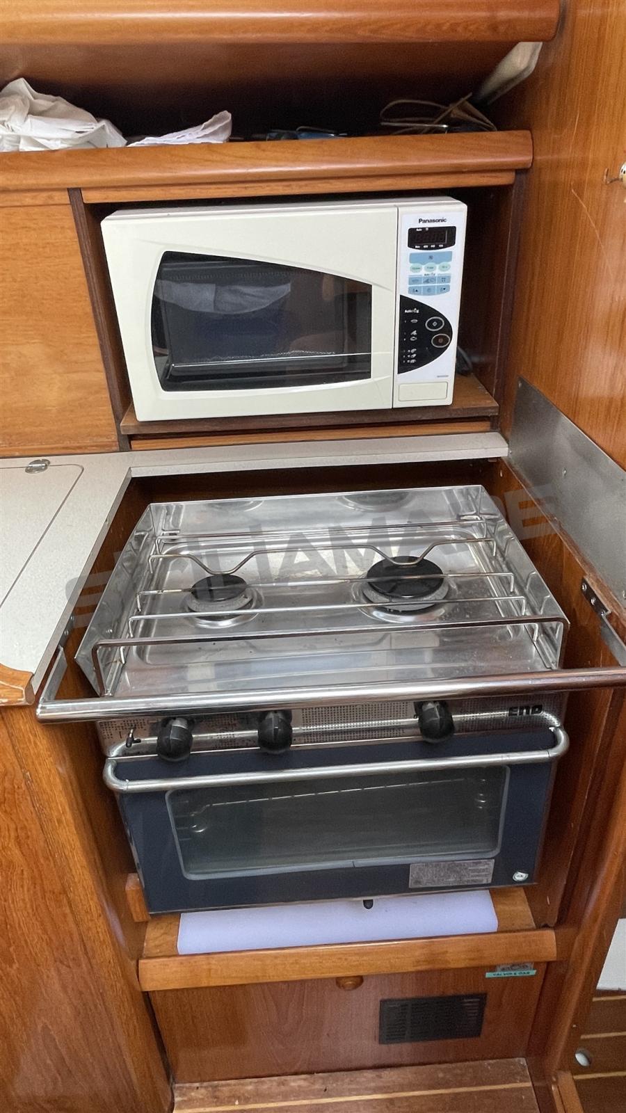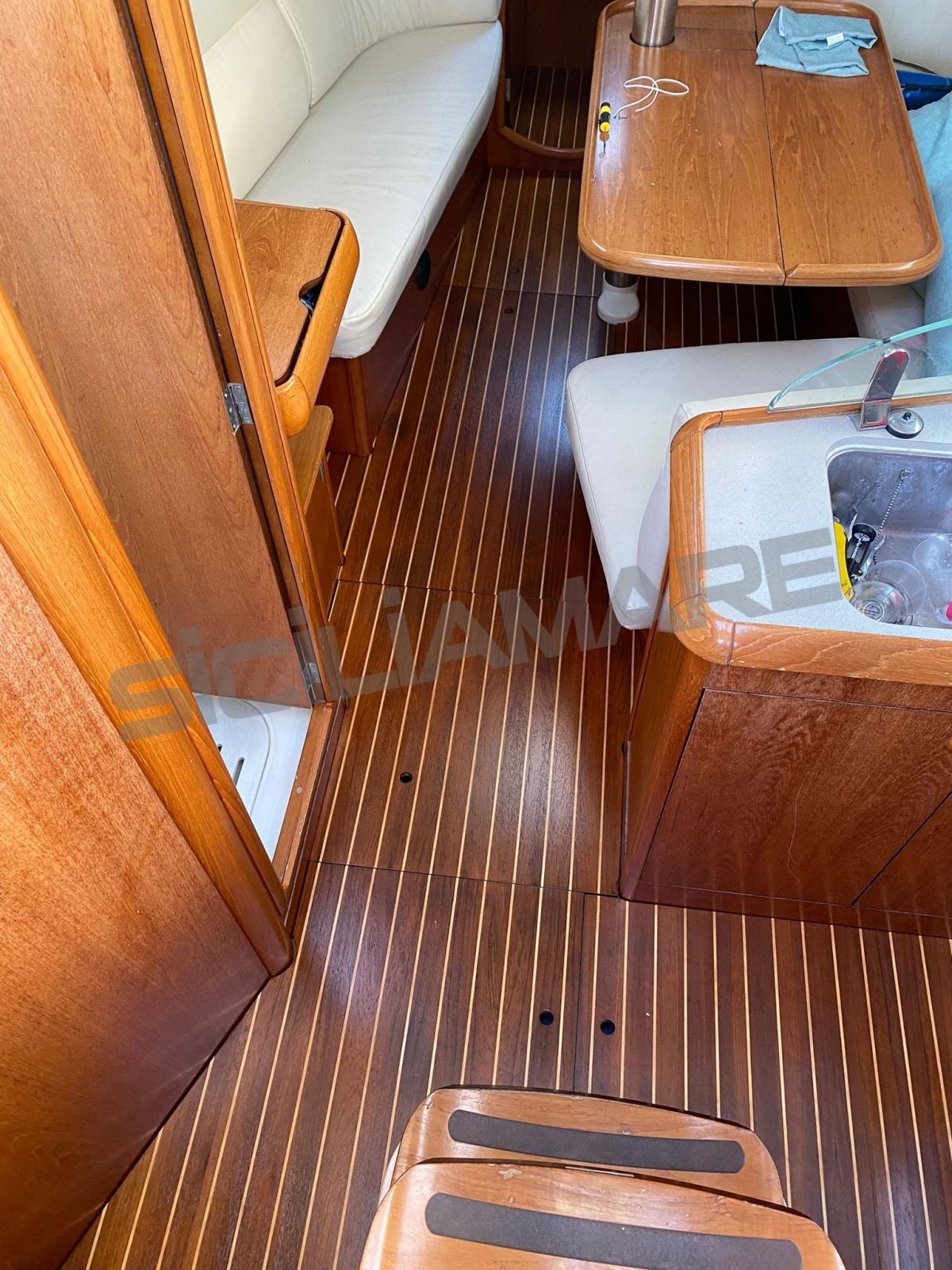 Engine Alarm, Water pressure pump, 3 Batteries (motore + 2 servizi), Deck Shower, Gangway, Automatic Bilge Pump, Manual Bilge Pump, Teak Cockpit, Shorepower connector, Electric Windlass (1000w), Strand rigging, swimming ladder, Tender (2,10 del 2017 + FB 4 cv), 4 Winch (Harken).