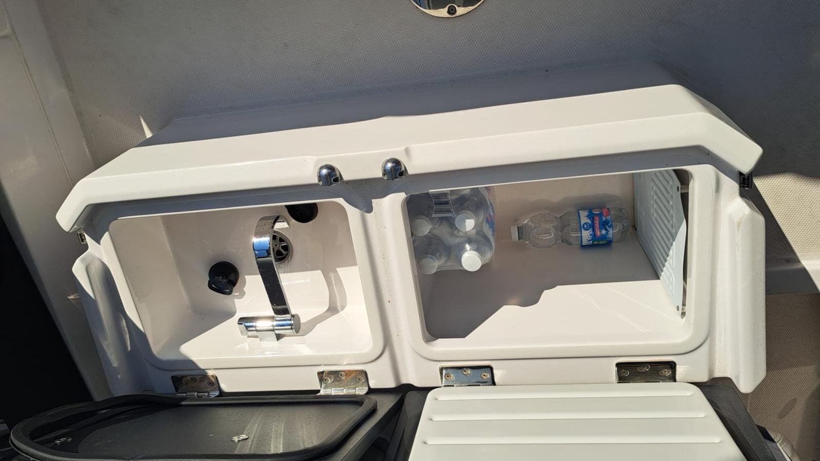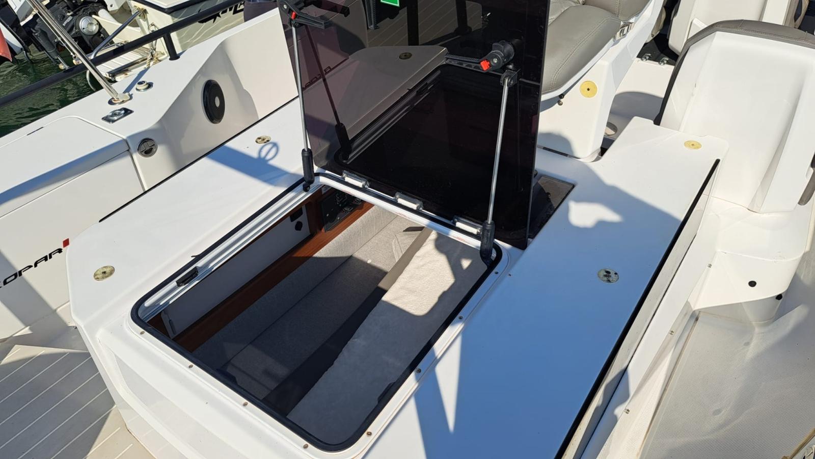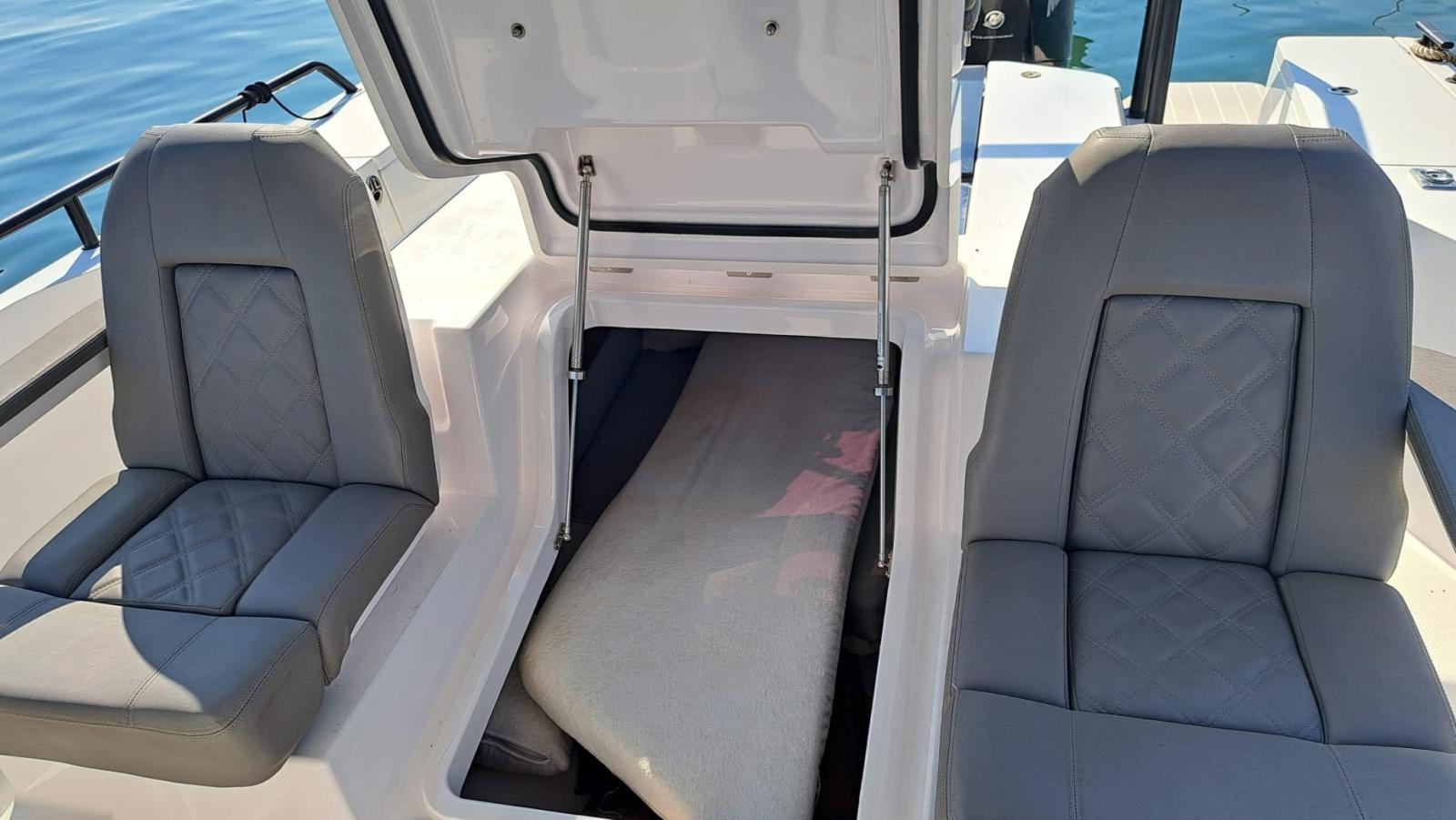 Water pressure pump, Auto-Trim, Deck Shower, Electric Flaps, Washbasin in the cockpit, Courtesy Lights, Fenders, Automatic Bilge Pump, Manual Bilge Pump, Shorepower connector, Electric Windlass, swimming ladder, Horn, T-Top.
