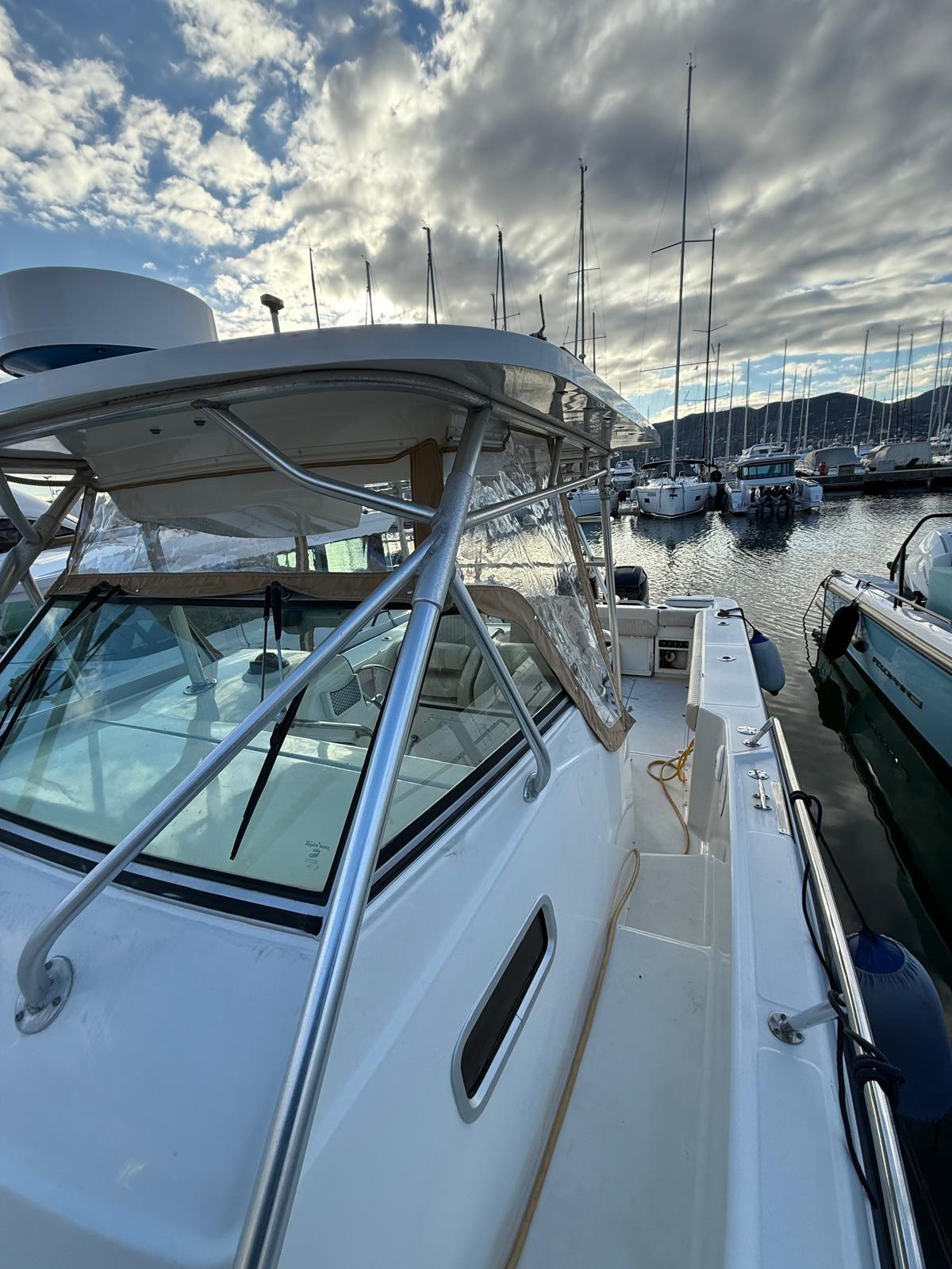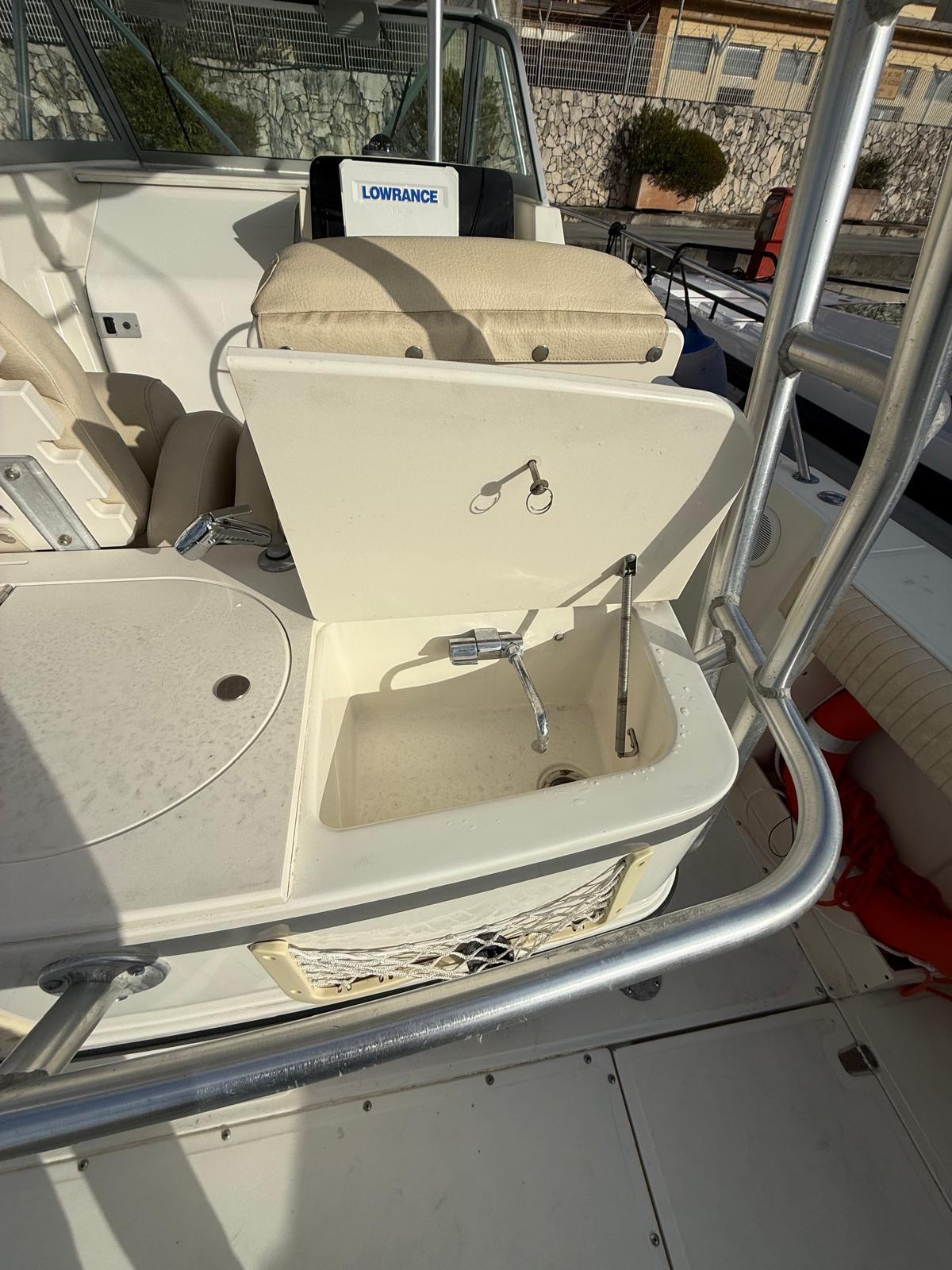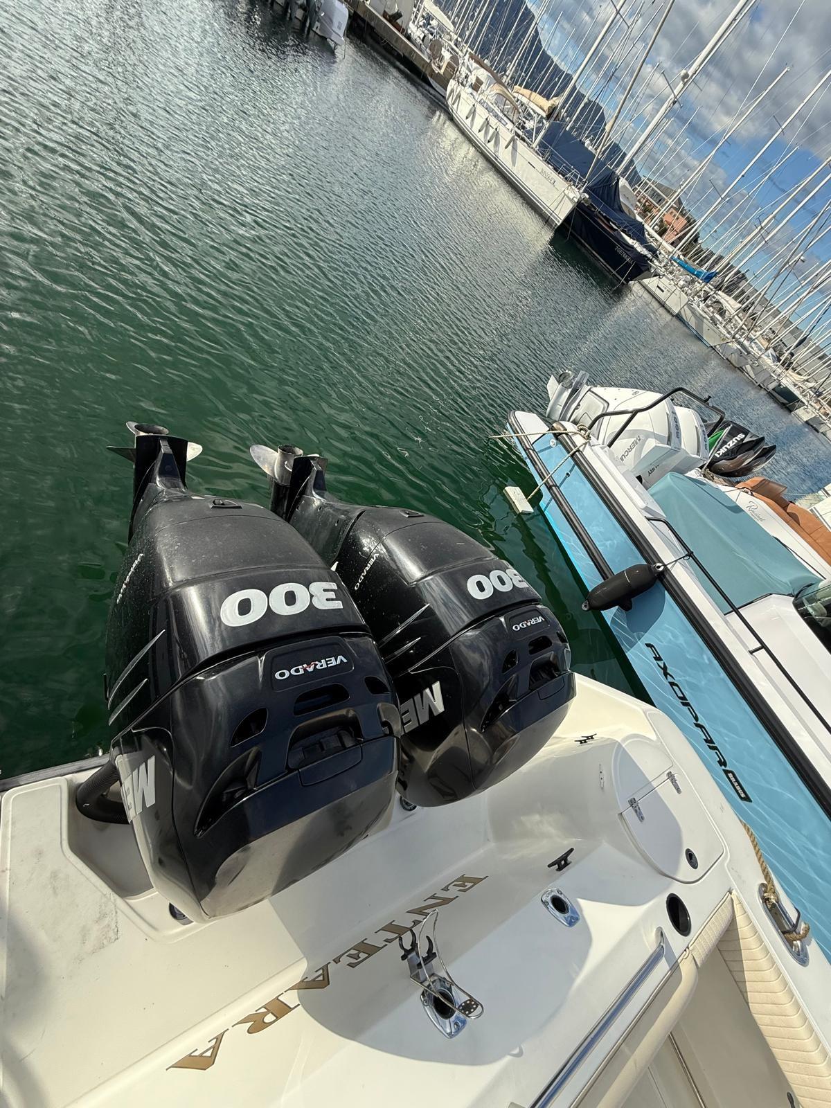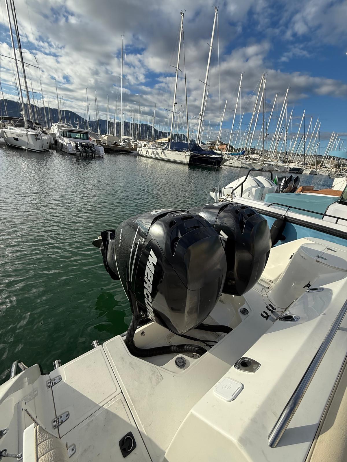 Fume/Gas Detector, Engine Alarm, 2 Alternator, Shore power cable, Deck Shower, Electric Flaps, Hard top (chiudibile), Washbasin in the cockpit, Courtesy Lights, Fenders, Automatic Bilge Pump, Entry door, Shorepower connector, Voltage Rectifier, Electric Windlass, swimming ladder, T-Top.