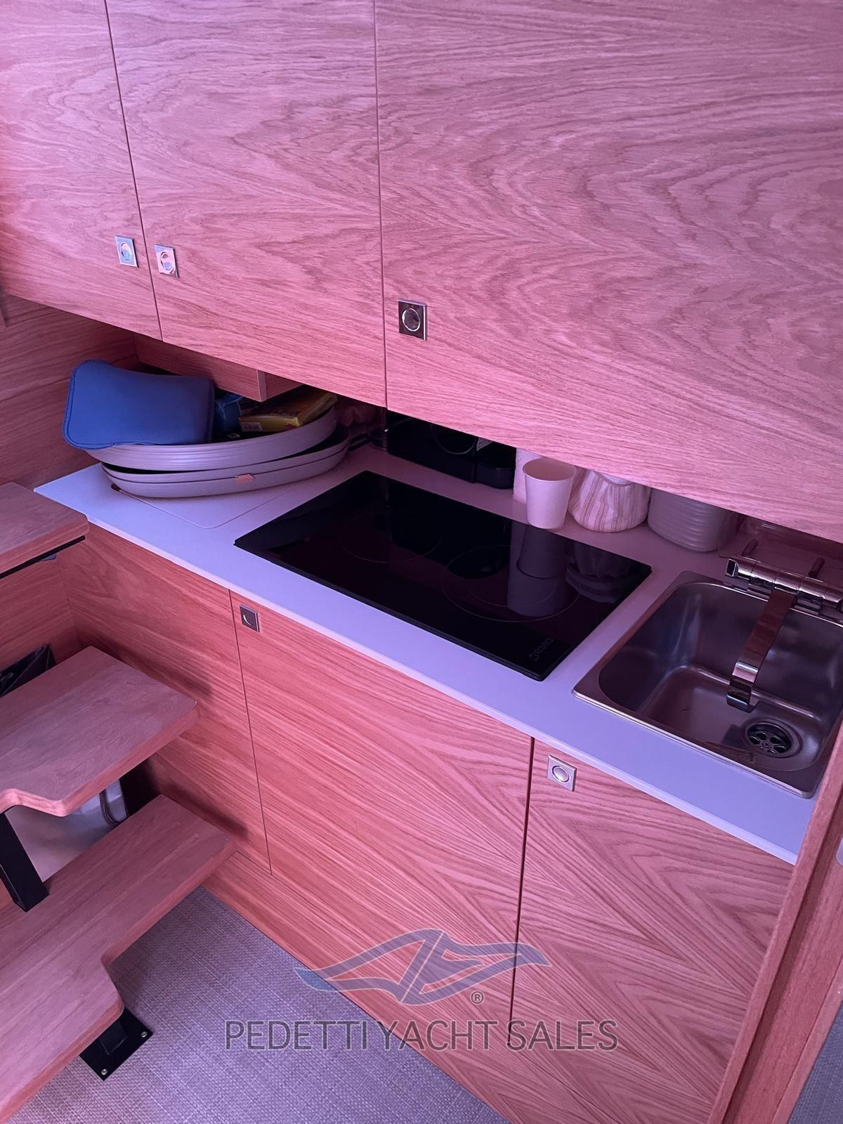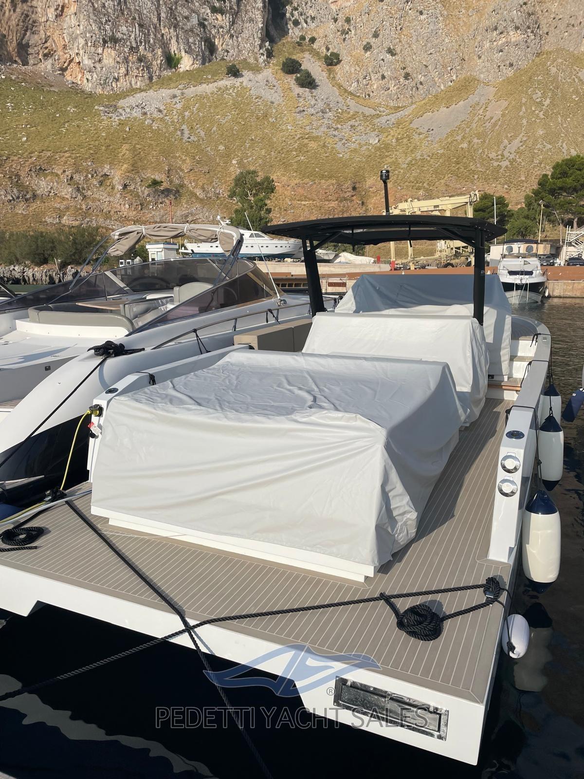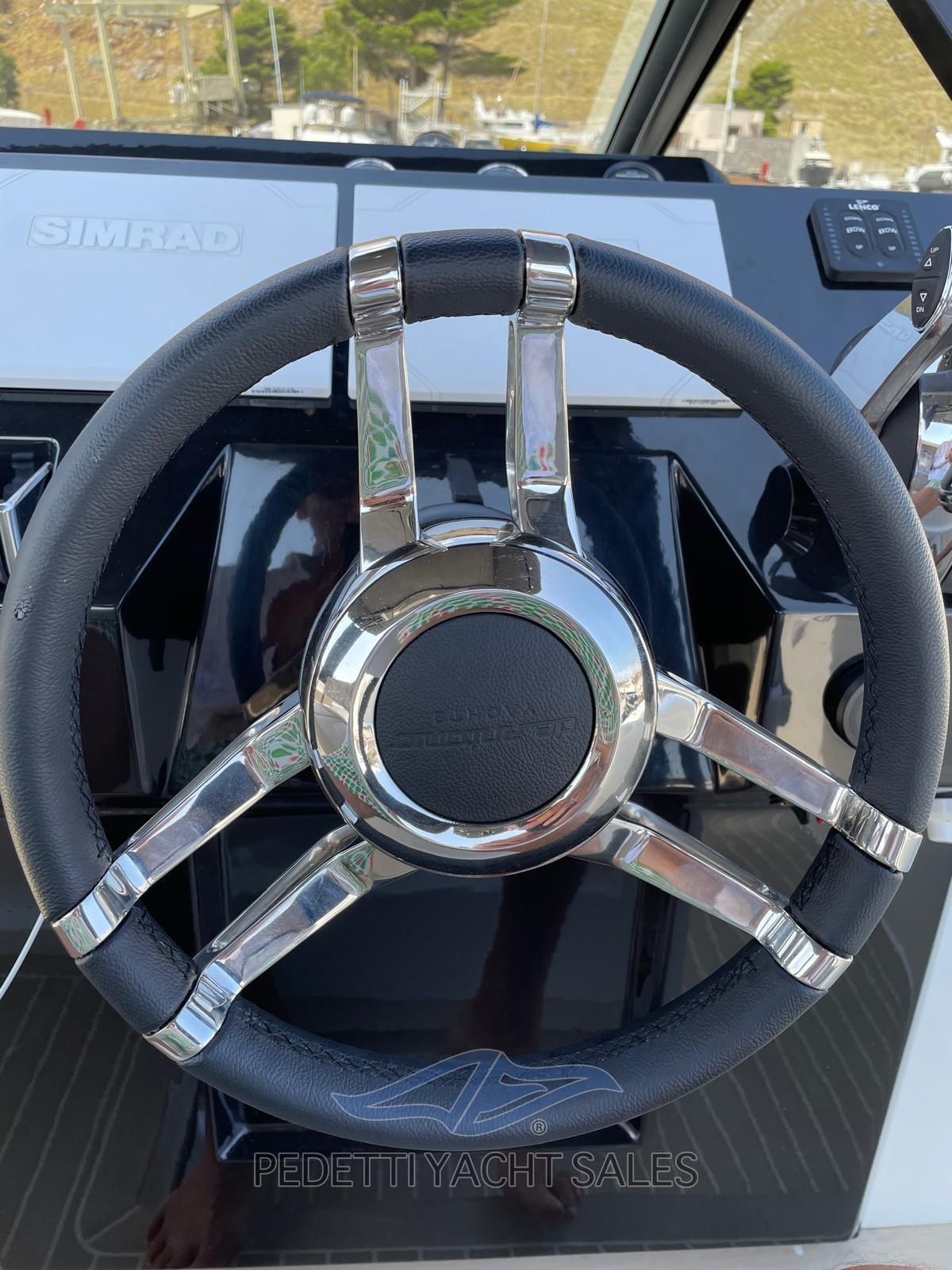 Water pressure pump, Auto-Trim, Folding cleats, Deck Shower, Electric Flaps, Underwater lights, Teak deck, Shorepower connector, swimming ladder, T-Top.