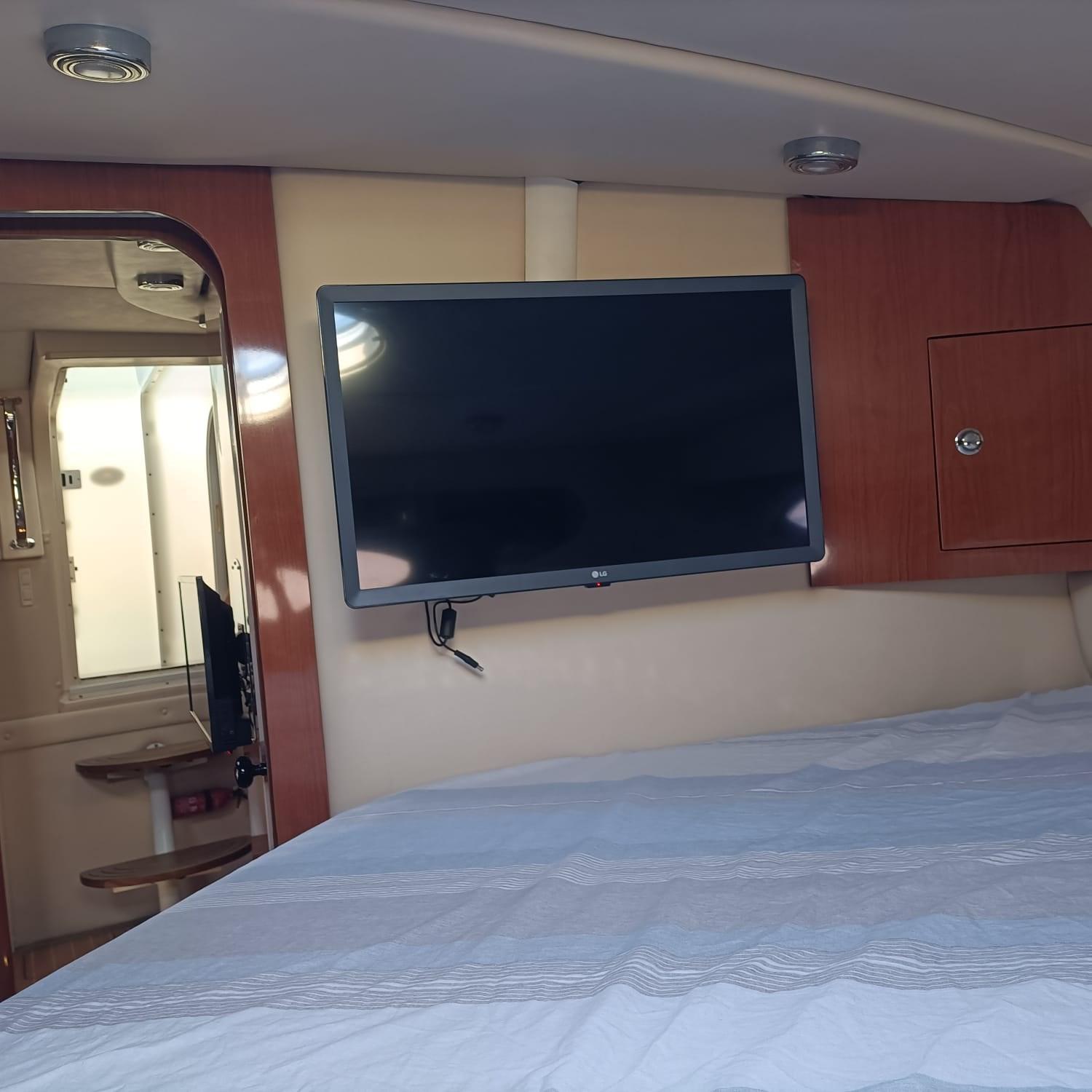 Engine Alarm, Water pressure pump, 5 Batteries, Deck Shower, Hydraulic Flaps, Fire Extinguishing System, Flaps Indicators, Courtesy Lights, Solar panels, Platform, Automatic Bilge Pump, Teak Cockpit, Shorepower connector, Voltage Rectifier, Rollbar, Electric Windlass, swimming ladder, Living Room Foldable Table, Horn.