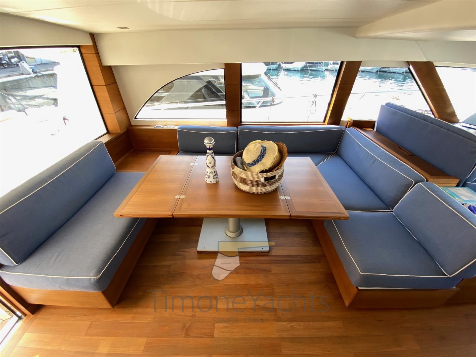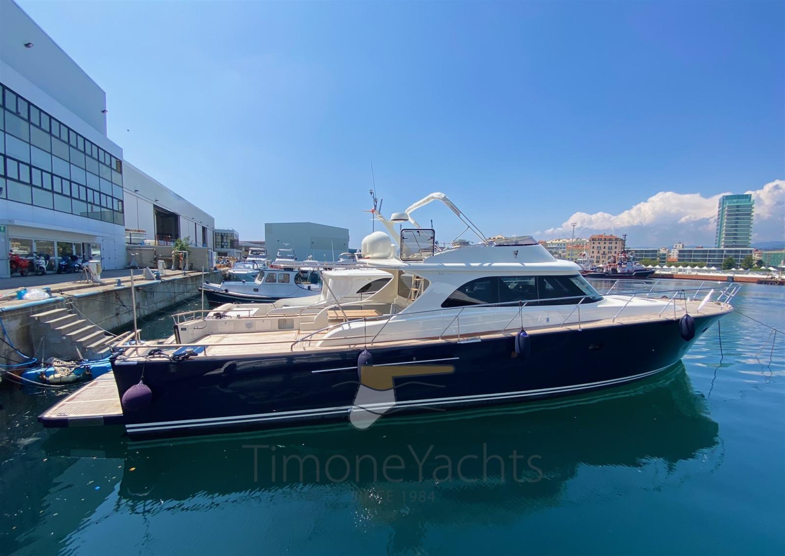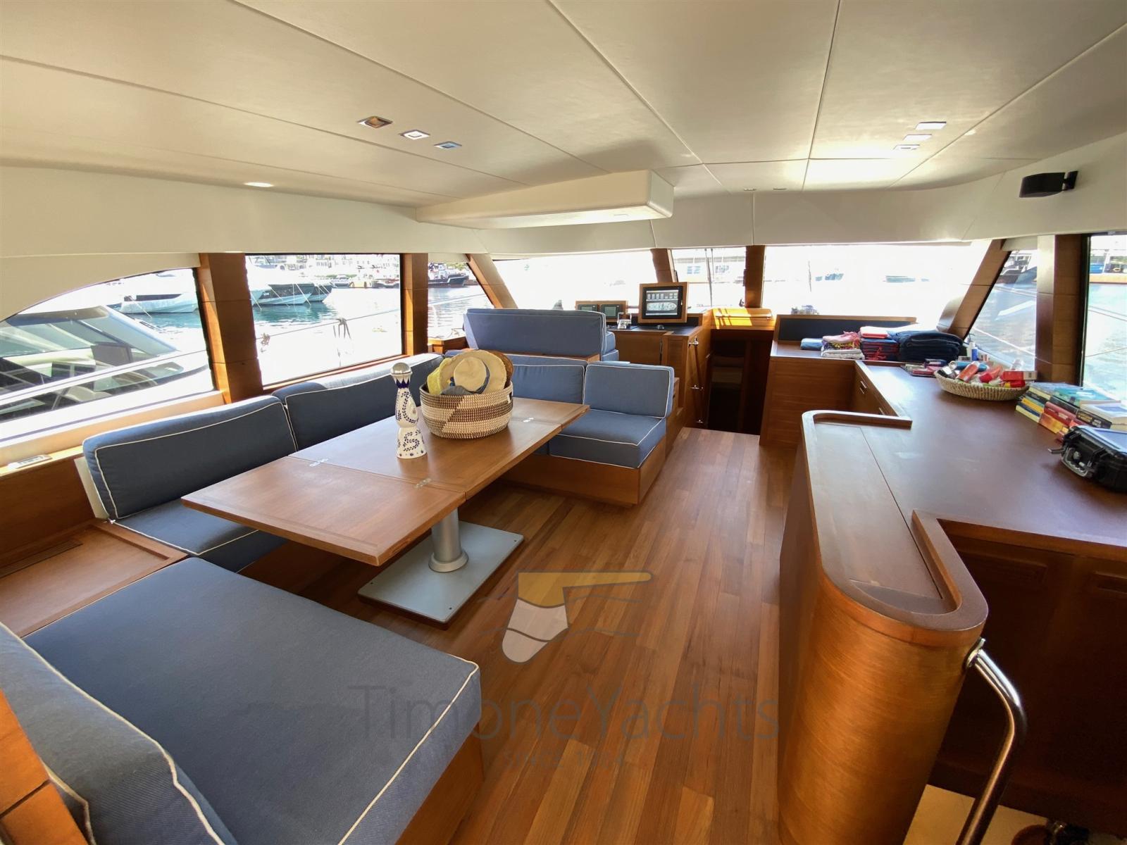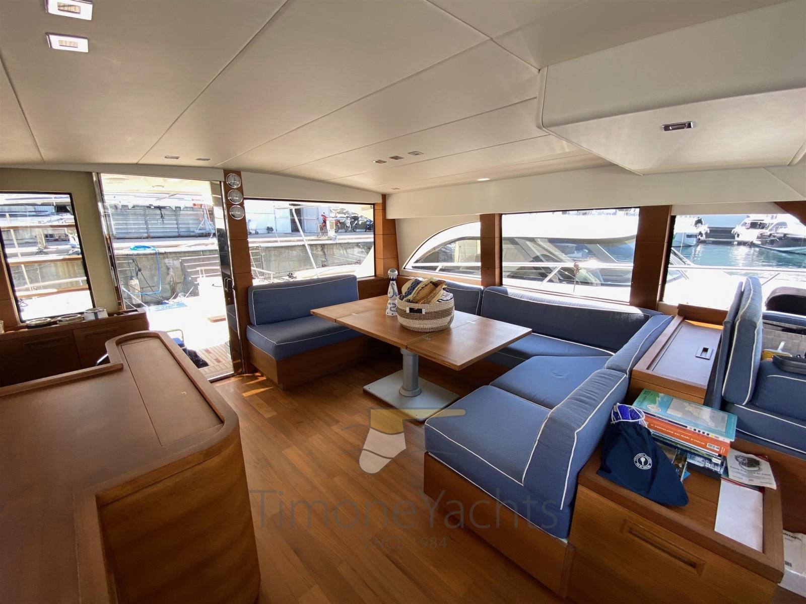2 Engine Alarm, Bilge Alarm, Water pressure pump, Special Colour, Deck Shower, Twin Steering, Hydraulic Flaps, Fire Extinguishing System, Courtesy Lights, Gangway (elettroidraulica), Platform (con piano in teak), 5 Automatic Bilge Pump, Entry door, Teak Cockpit, Shorepower connector, Voltage Rectifier, Electric Windlass, swimming ladder, Horn.