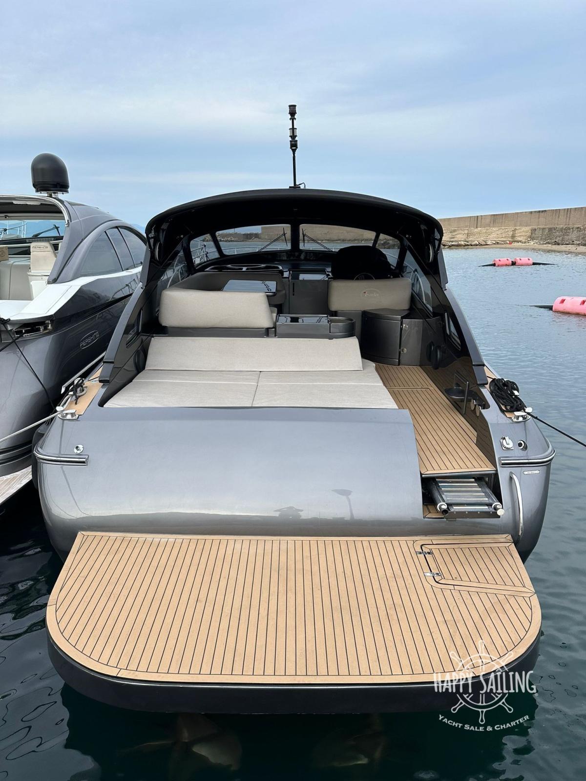 The Baia 48 Flash stands out for its sporty profile and elegant lines, a symbol of Italian savoir-faire. The planing fiberglass hull ensures high speed and stable navigation even in demanding conditions.