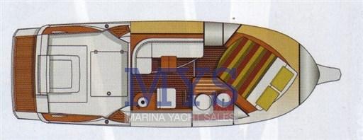 Engine Alarm, Bilge Alarm, Anchor (kg 10 + 70 mt di catena), Water pressure pump, Batteries (2 x 110 Ah), Deck Shower, Hydraulic Flaps, Flaps Indicators, Courtesy Lights, Underwater lights, Platform (in teak), Automatic Bilge Pump, Manual Bilge Pump, Entry door, Teak Cockpit, Shorepower connector, Voltage Rectifier, Electric Windlass, swimming ladder, cockpit table, Horn.