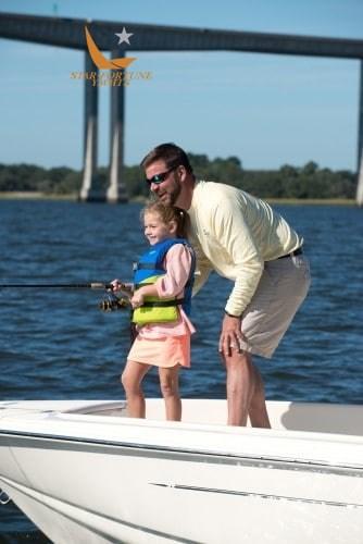 • (4) Stainless steel wire rod holders aft • Console rod holders • Aerated live bait tank