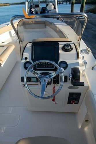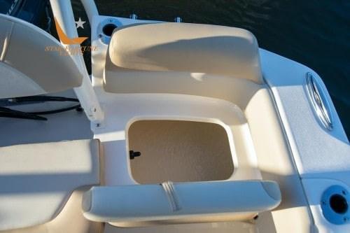 It has a large rod holder, including 4 flush-mounted SS rod holders, a rod holder compartment under the gunwale and six rod holders on the console.