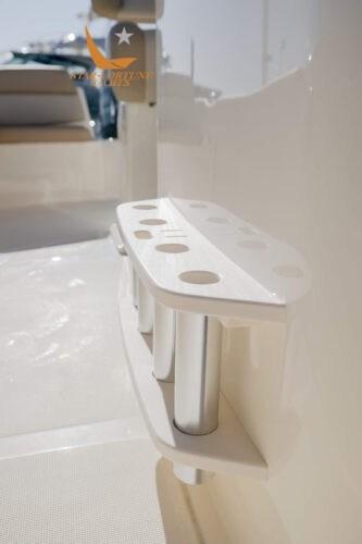 • (4) Stainless Steel Wire Fishing Rod Holders • Under Gunwale Compartment • (4) Console Fishing Rod Holders • Aerated Bait Tank Leaning Post