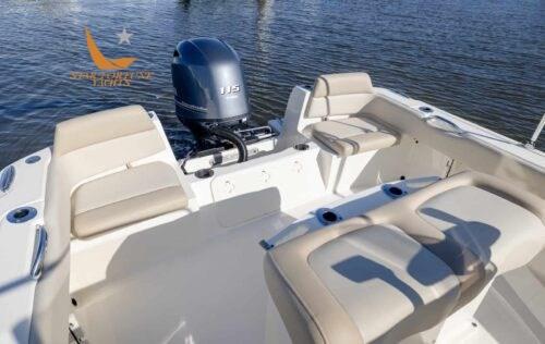 • (6) Cup holders • Battery on/off switch • Stainless steel handrails • Aft/bow/midboat cleats