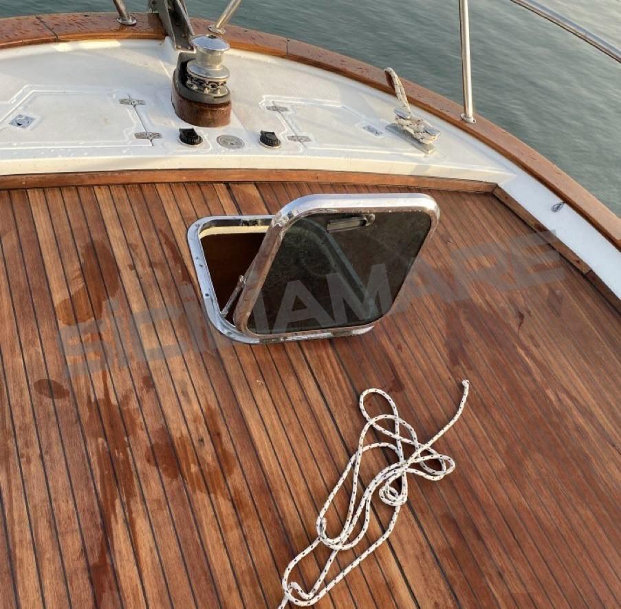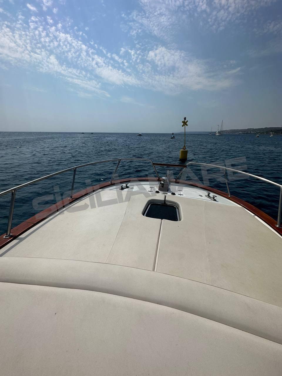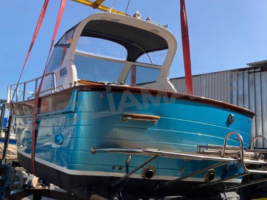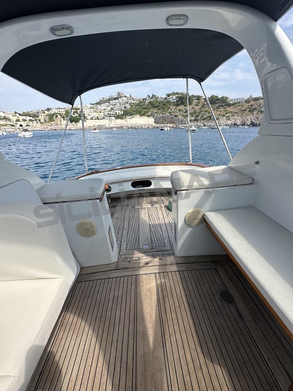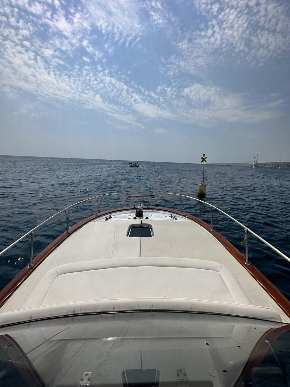 Water pressure pump, 3 Batteries, Teak Side Decks, Shore power cable, Special Colour (Scafo Turchese), Deck Shower, Electric Flaps (zipwake), Courtesy Lights, Platform, 2 Electric Bilge Pump, Manual Bilge Pump, Teak deck, Teak Cockpit, Shorepower connector, Rollbar, Electric Windlass, swimming ladder.