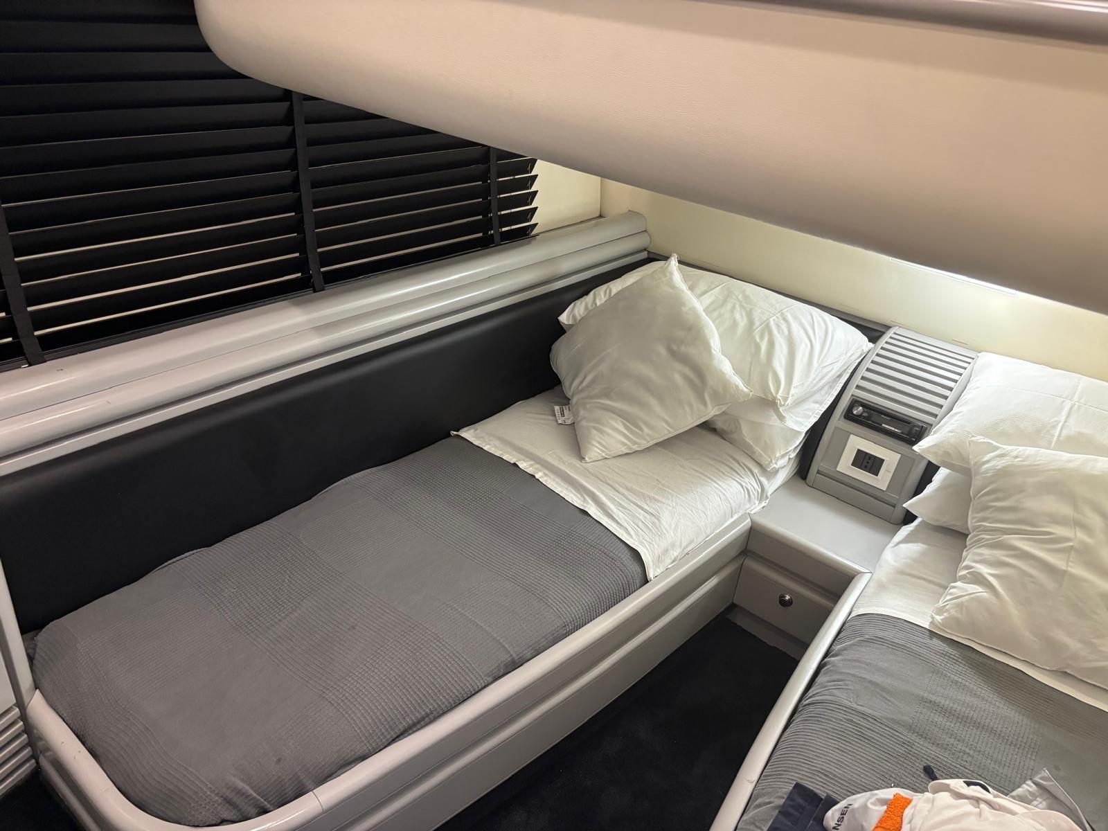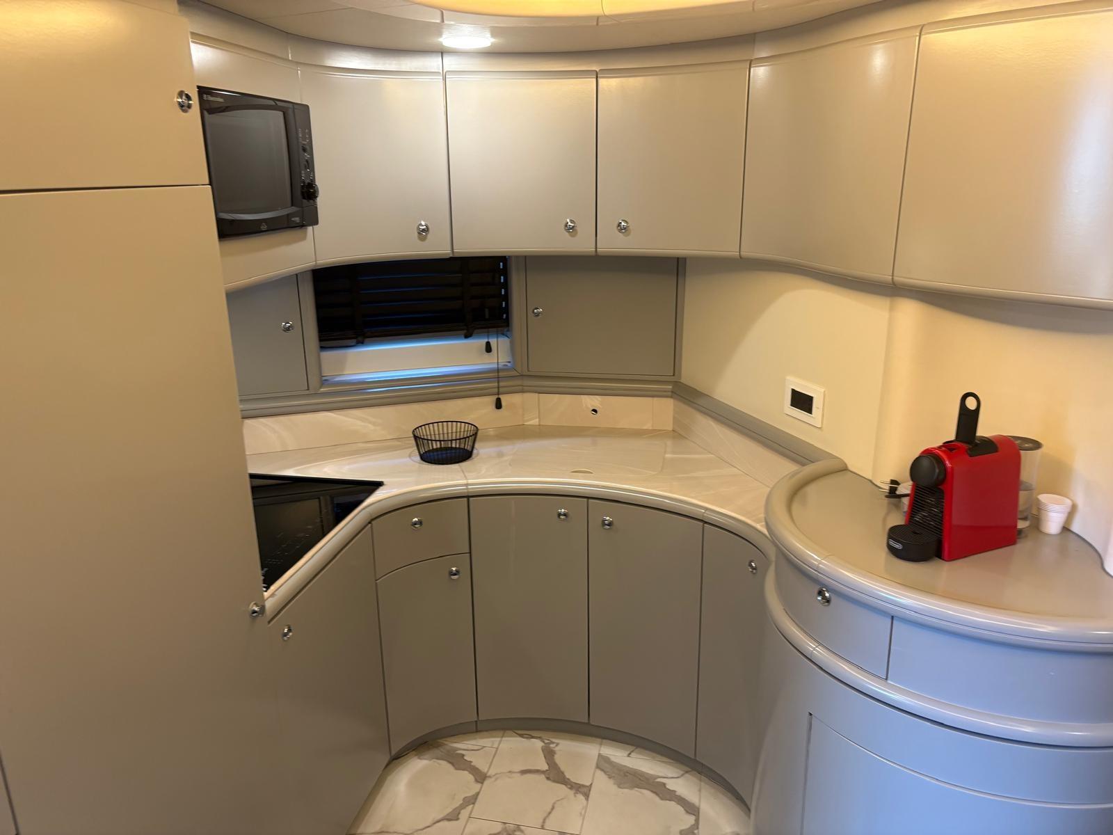 Kitchen equipment hob 4 burners induction new, microwave oven, large fridge new MAN engines 1300hp mechanical, generator KOHLER 16kw engine hours 1235,ARNESON transmissions type, bow thruster side power, electronic equipment 2 plotters SIMRAD VHF GPS RADAR ECO adjustable headlight, SIMRAD autopilot (to be repaired), inverter, air conditioning new installed in July 2025 condaria, both internal and external cushions are in fair condition, stern cushions to be redone