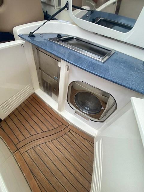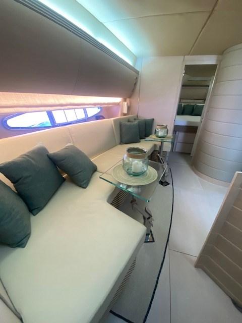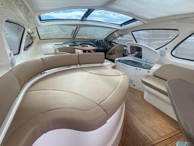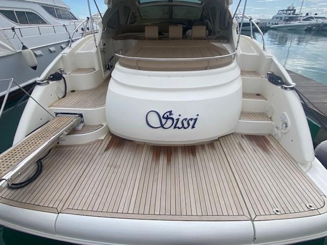 Engine Alarm, Bilge Alarm, Electric Engine Compartment Opening, Water pressure pump, Deck Shower, Directional Spotlight, Hydraulic Flaps, Tender Garage, Hard top, Fire Extinguishing System, Compressor Air System, Flaps Indicators, Anchor Chain Washdown, Washbasin in the cockpit, Courtesy Lights, Underwater lights, Gangway (idraulica), Platform, Automatic Bilge Pump, Manual Bilge Pump, Teak Cockpit, Shorepower connector, Water harbor connector system, Voltage Rectifier, Electric Windlass, swimming ladder, cockpit table, Tender, Horn, 2 Stern Winches.