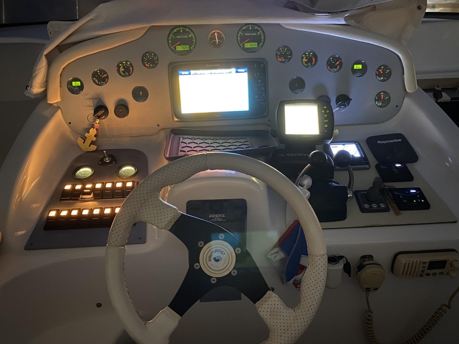 Rudder angle indicator, Radar Antenna, Electronic engine control, On-Board Computer, Chain counter, DSC vhf, Plotter with GPS antenna.