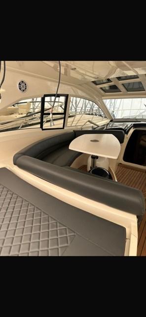 Engine Alarm, Alternator, Electric Engine Compartment Opening, Water pressure pump, Special Colour (Grigio scuro), Deck Shower, Directional Spotlight, Electric Flaps, Tender Garage, Hard top, Washbasin in the cockpit, Courtesy Lights, Gangway, Platform, Automatic Bilge Pump, Manual Bilge Pump, Teak Cockpit, Shorepower connector, Voltage Rectifier, Electric Windlass, swimming ladder, cockpit table, Living Room Foldable Table, guard rails with gates, Horn.