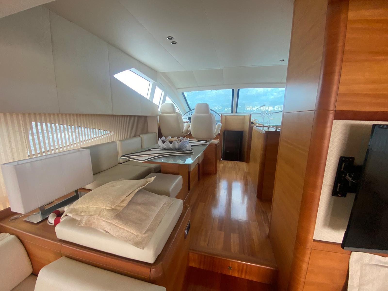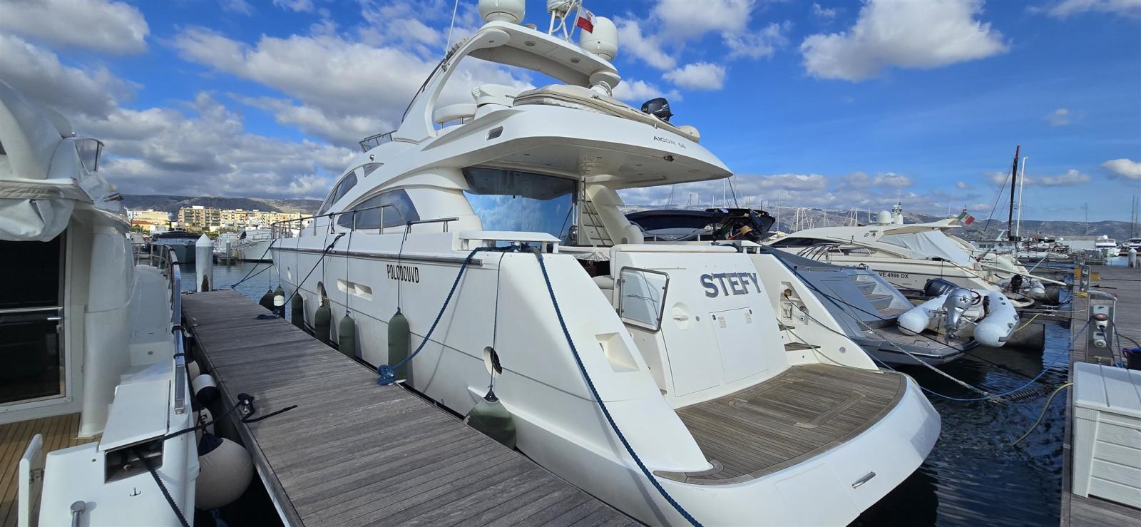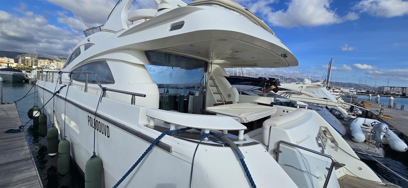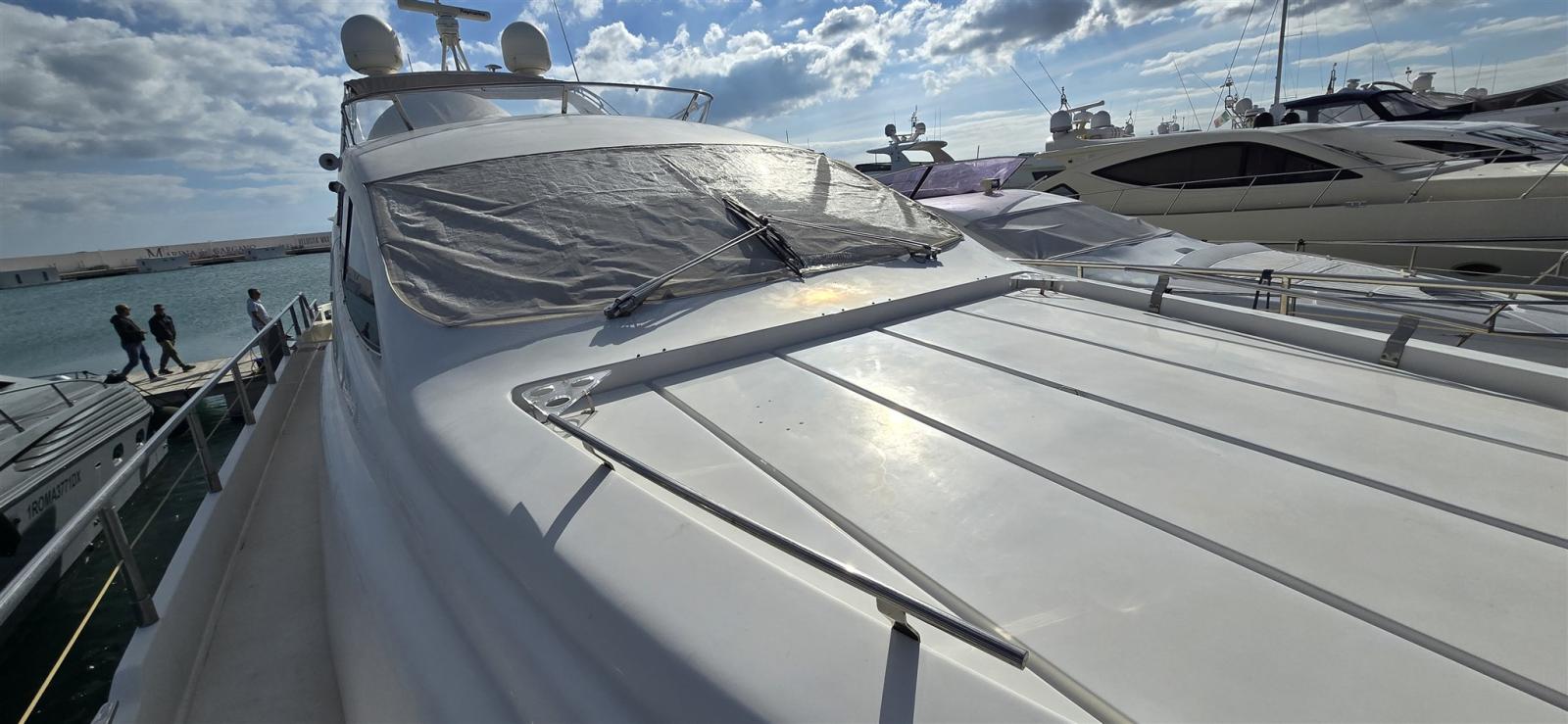 Engine Alarm, Bilge Alarm, Alternator, Spare shaft, Water pressure pump, Deck Shower, Directional Spotlight, Hydraulic Flaps, Tender Crane, Fire Extinguishing System, Flaps Indicators, Anchor Chain Washdown, Courtesy Lights, Underwater lights, Gangway, Automatic Bilge Pump, Manual Bilge Pump, Side door, Teak Cockpit, Shorepower connector, Water harbor connector system, Voltage Rectifier, Electric Windlass, swimming ladder, Saddles for tender, Tender, Horn, Stern Winches, Bow Winches.