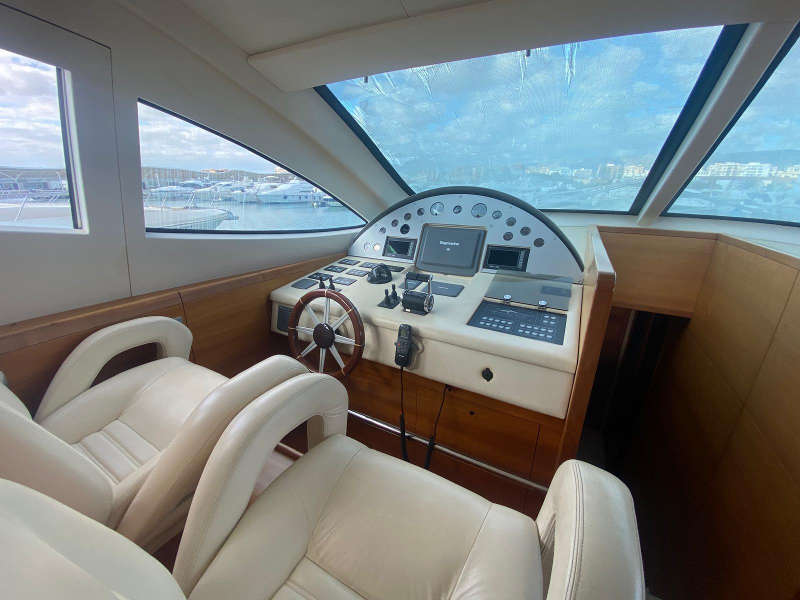 Rudder angle indicator, Radar Antenna, Electronic engine control, Chain counter, DSC vhf, Plotter with GPS antenna, Co-pilot seat, Yacht controller.