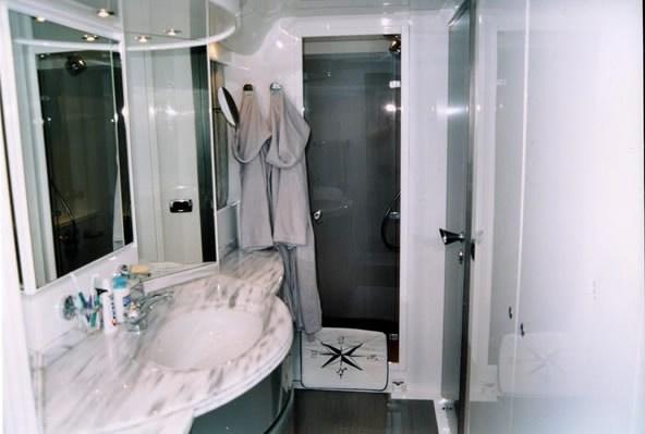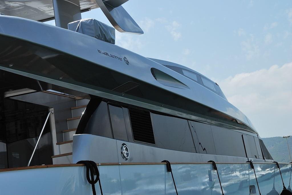 Fume/Gas Detector, Engine Alarm, Bilge Alarm, Water pressure pump, Draining System, Teak Side Decks, Special Colour, Deck Shower, Hydraulic Flaps, Davits for tender on fly, Fire Extinguishing System, Flaps Indicators, Anchor Chain Washdown, Courtesy Lights, Gangway, Platform, Automatic Bilge Pump, Side door, Teak Cockpit, Shorepower connector, Hydraulic Windlass, swimming ladder, Stabilizers, cockpit table, Tender, Stern Winches, Bow Winches.