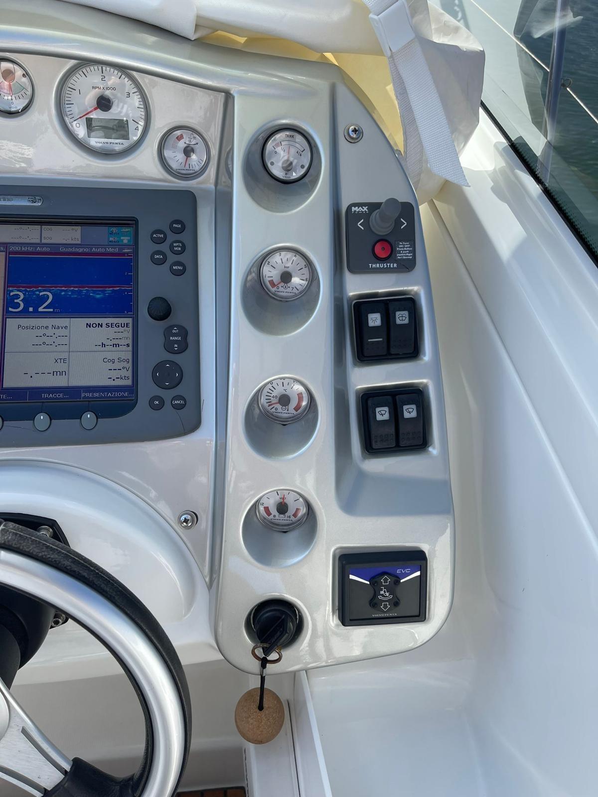 Engine Alarm, Bilge Alarm, Water pressure pump, Batteries (2), Deck Shower, Hydraulic Flaps, Hard top, Fire Extinguishing System, Flaps Indicators, Washbasin in the cockpit, Underwater lights, Gangway, Platform, Automatic Bilge Pump, Teak Cockpit, Shorepower connector, Rollbar, Electric Windlass, swimming ladder, cockpit table, Horn.
