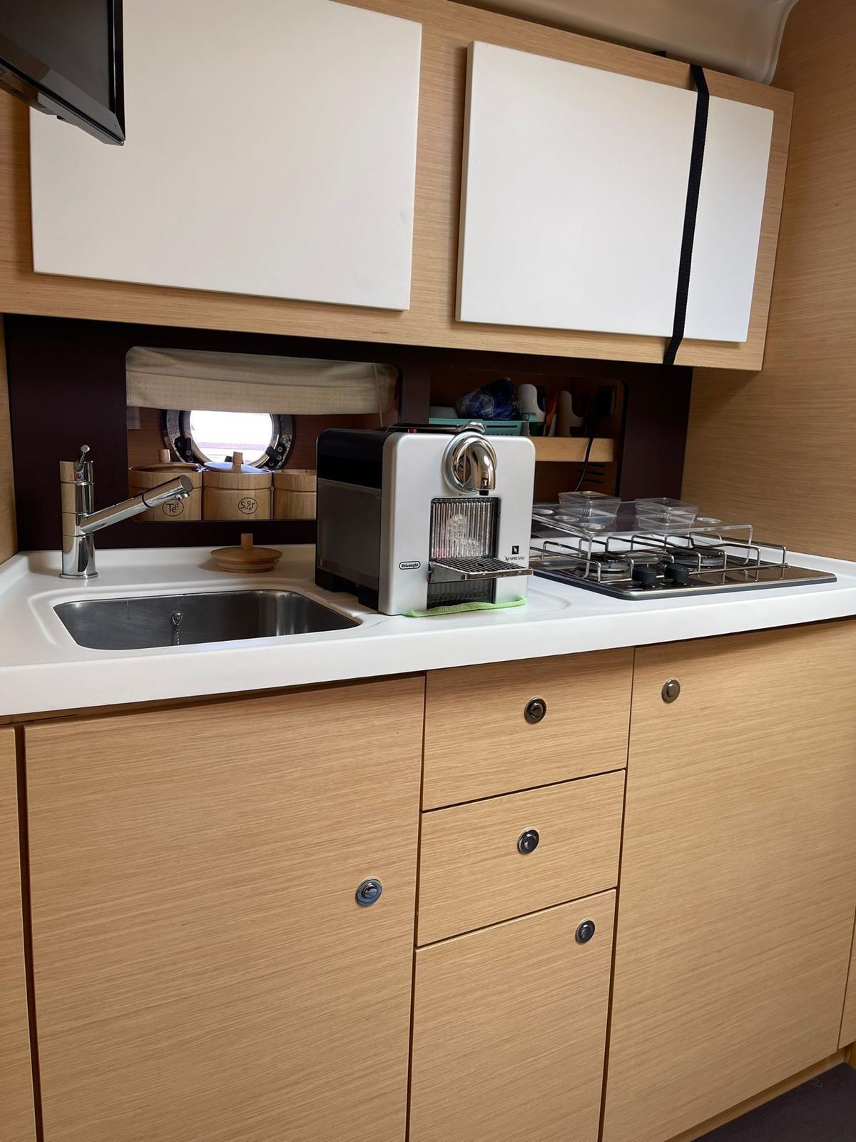 Galley, Deck Refrigerator, Ceramic hot plate.