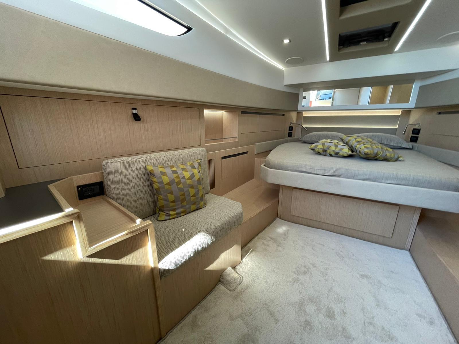 Comfort Package (Fiberglass Hard Top with LED lights + Refrigerator and Barbecue lt. 42 cockpit cabinet; Quay water intake with pressure reduction; LLA telescopic table with wooden top in the cockpit + Air conditioning version 1 Compact Monobloc 7000 Btu + Generator 5 kw