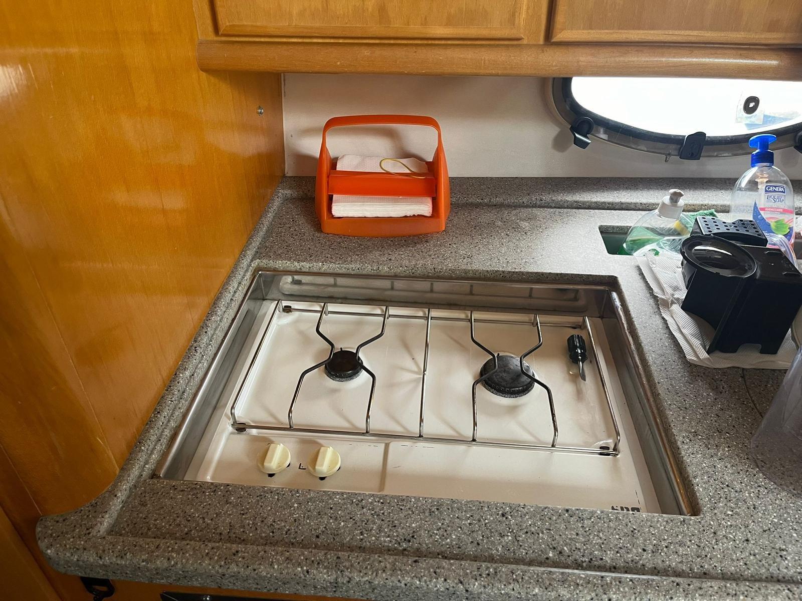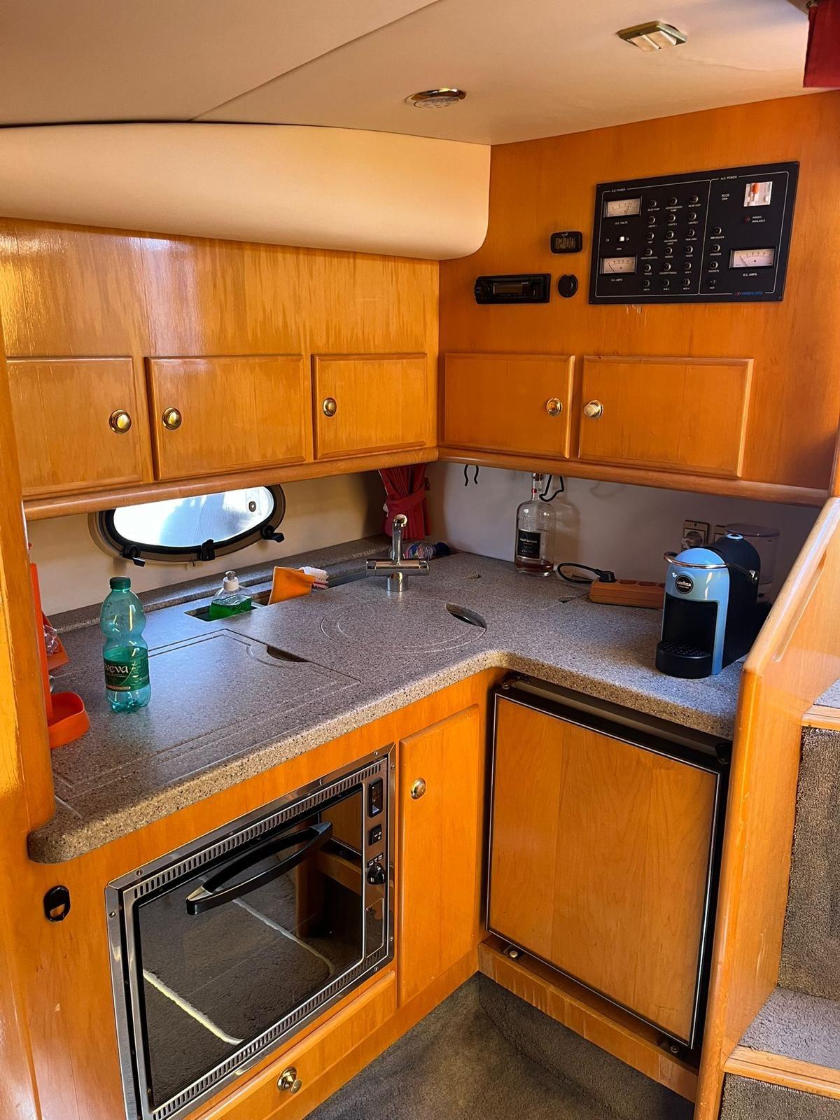 Engine alarm, Bilge alarm, Speakers, Anchor, Rudder angle, Autoclave, Batteries (2024), Boiler, Compass, Canopy, Battery charger, Odometer, Cockpit cover, Galley, Complete cushions, Cockpit cushions, Bow cushions (2024), Deck shower, Hydraulic flaps, Oven, Outside fridge, Indoor fridge, Flaps indicators, Navigation lights, 2-burner hob, Platform, Automatic bilge pump, Manual bilge pump, 220V shore socket, Shore water intake, 12v internal sockets, 220v internal sockets, Rollbar, Electric windlass, Swimming ladder, Stereo, Cockpit table, Folding saloon table, Console cover, Awning (2023), Manual marine toilet