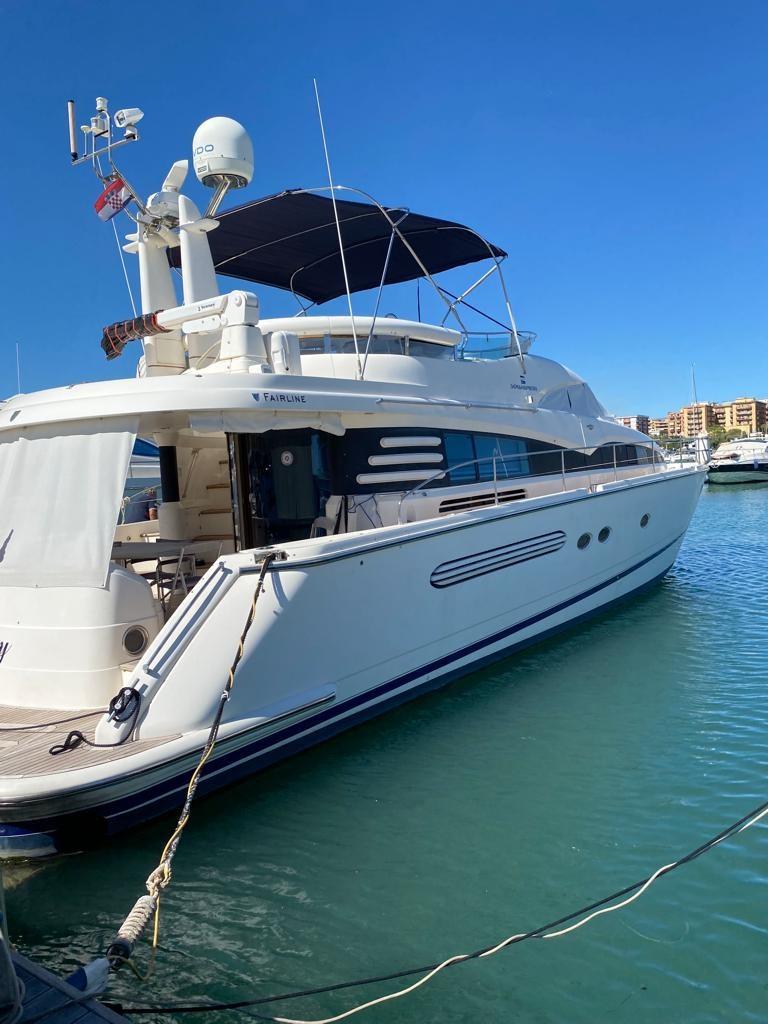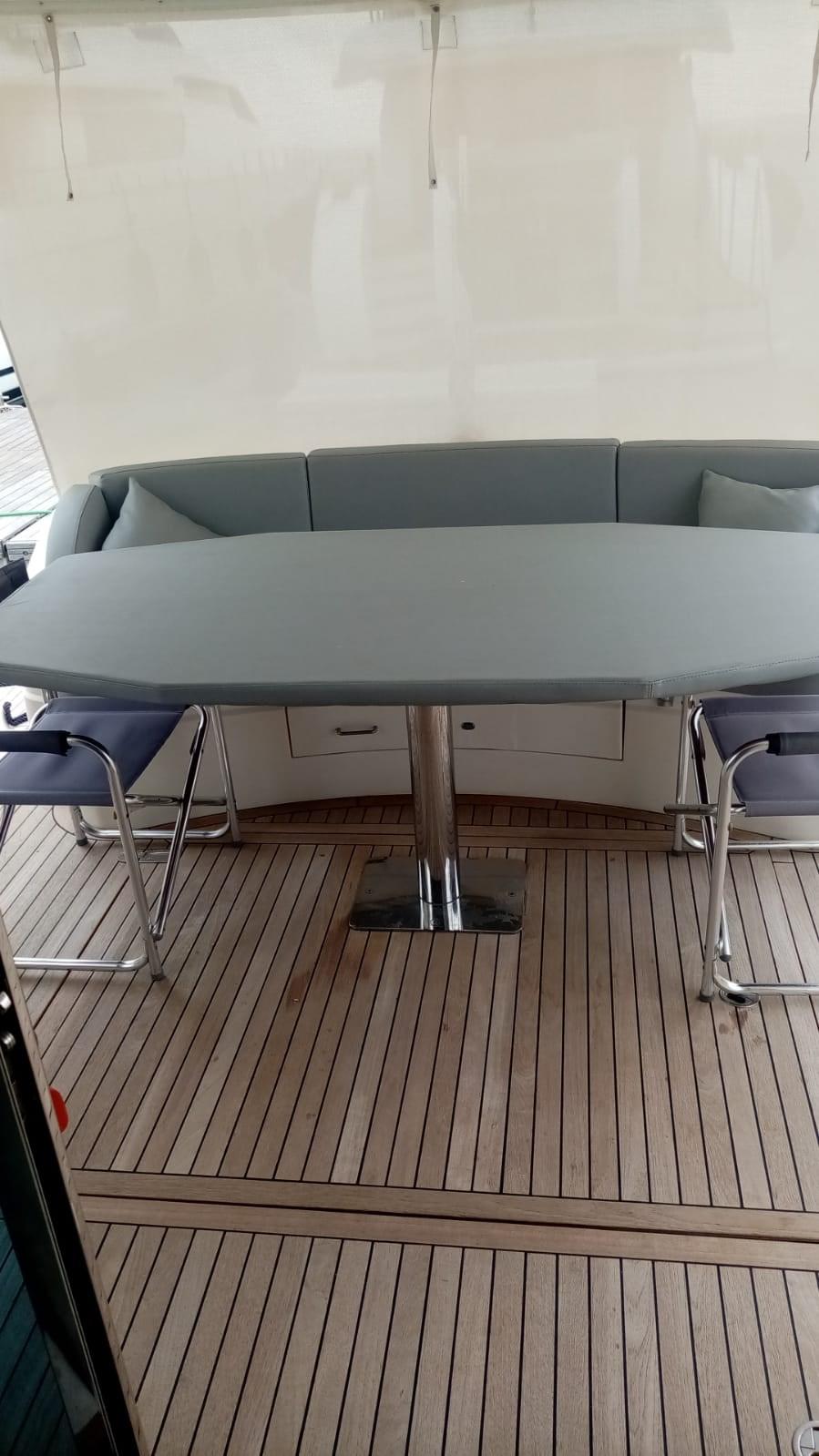 Fume/Gas Detector, Engine Alarm, Bilge Alarm, Water pressure pump, 8 Batteries, Teak Side Decks, Deck Shower, Directional Spotlight, Hydraulic Flaps, Crane, Fire Extinguishing System, Flaps Indicators, Courtesy Lights, Underwater lights, Fenders, Gangway, Automatic Bilge Pump, Manual Bilge Pump, Teak deck (FLEXITEK 2025), Teak Cockpit, Shorepower connector, Water harbor connector system, Hydraulic Windlass, swimming ladder, cockpit table, Horn, 2 Stern Winches.