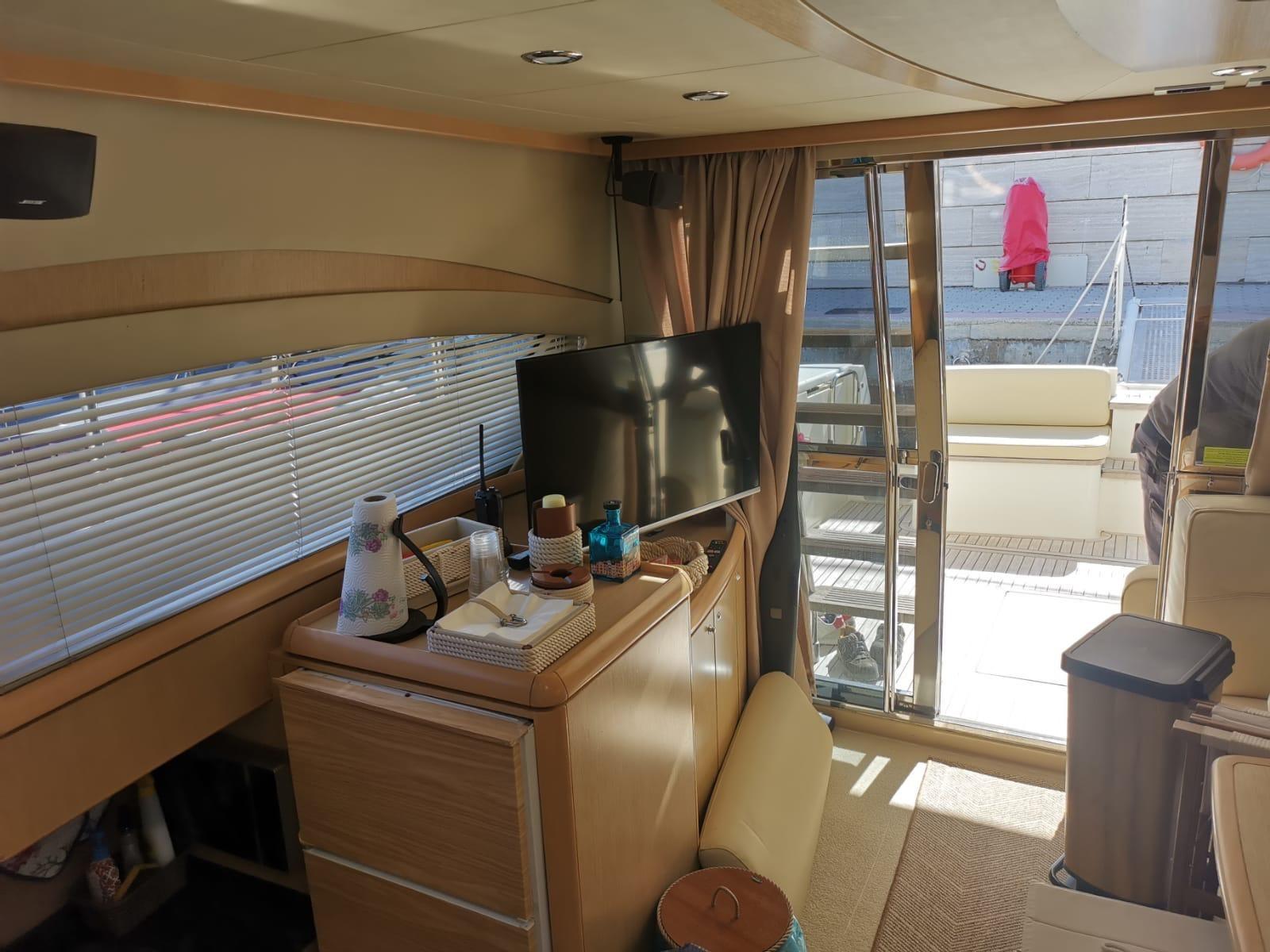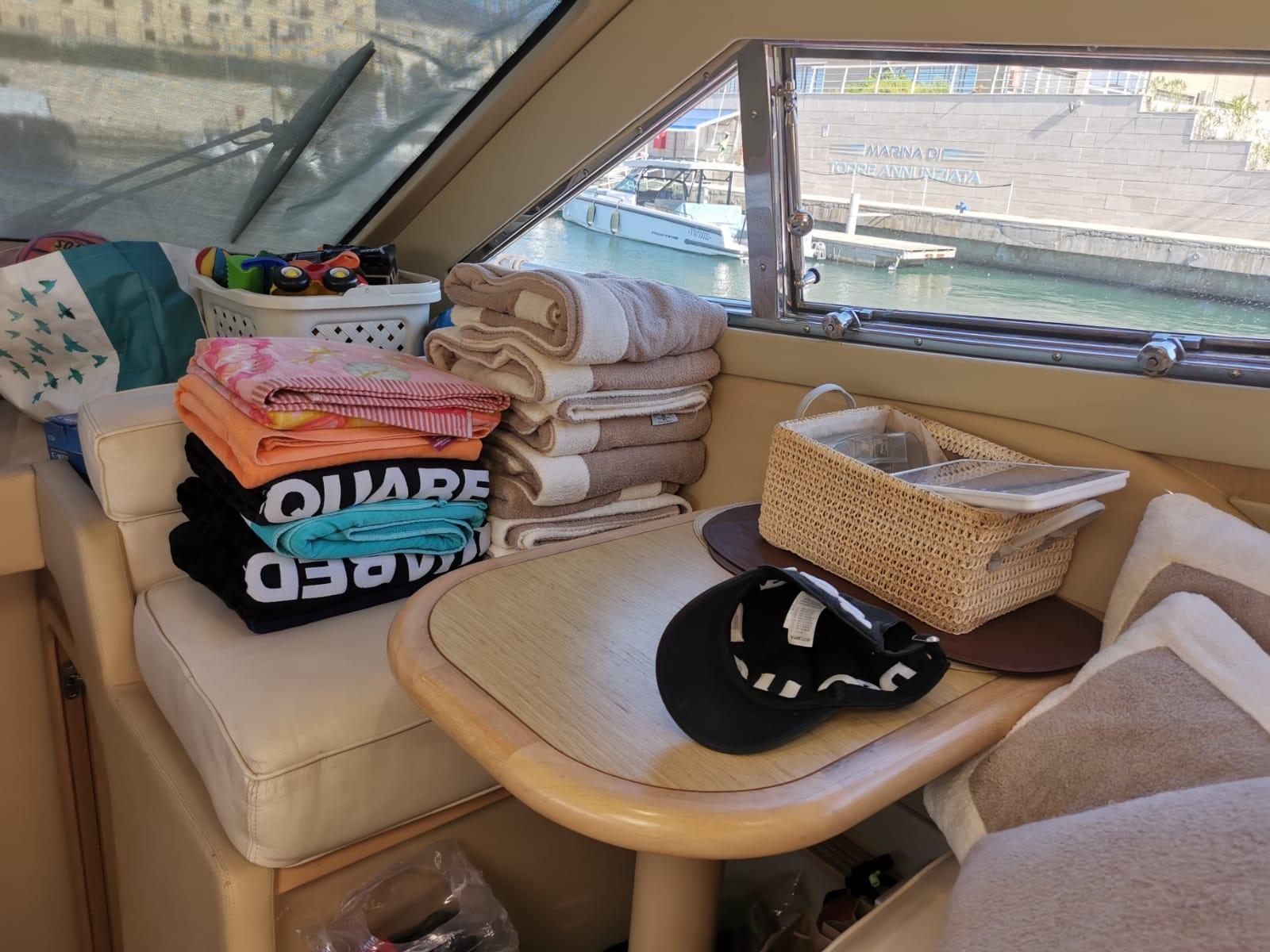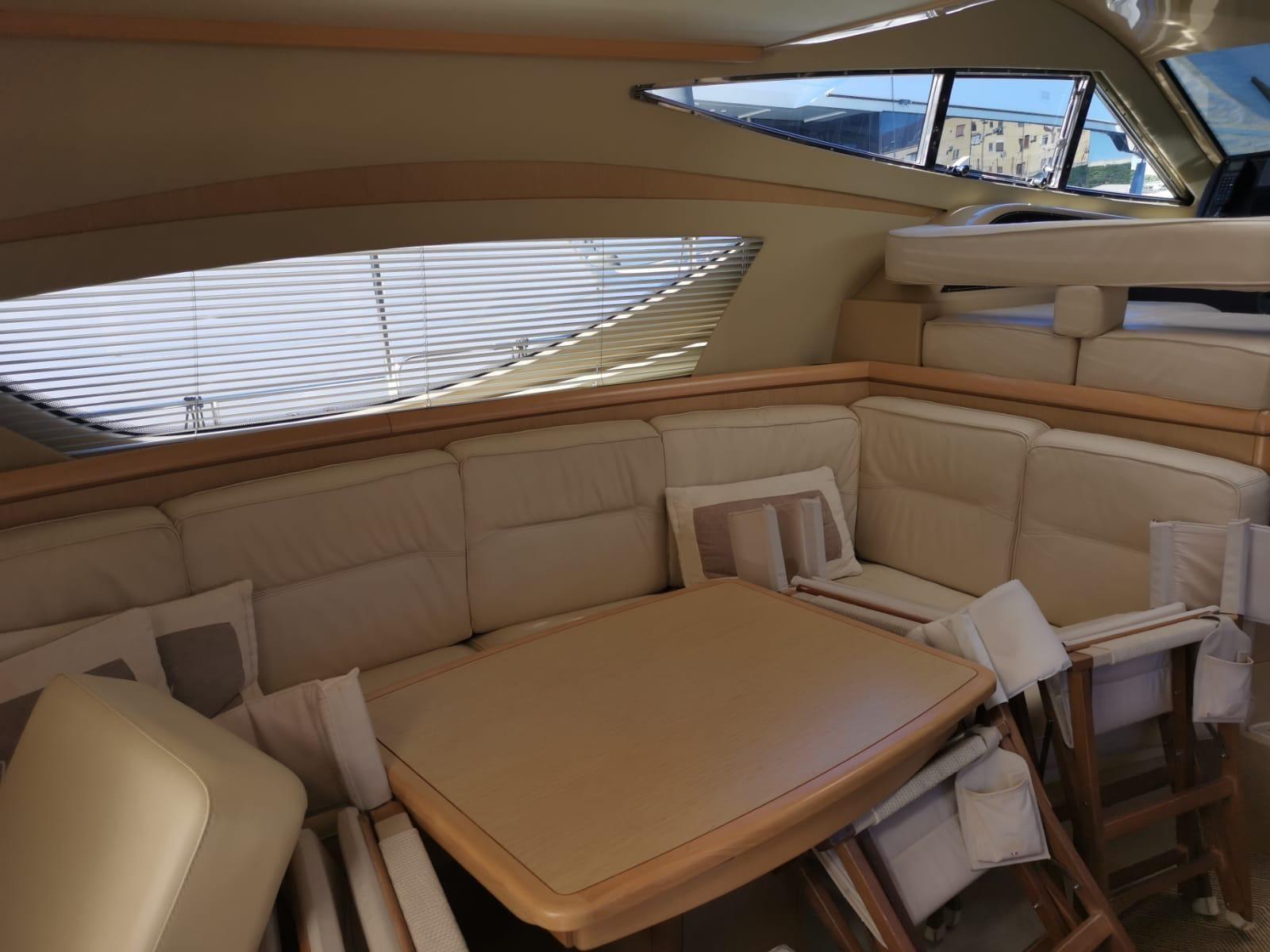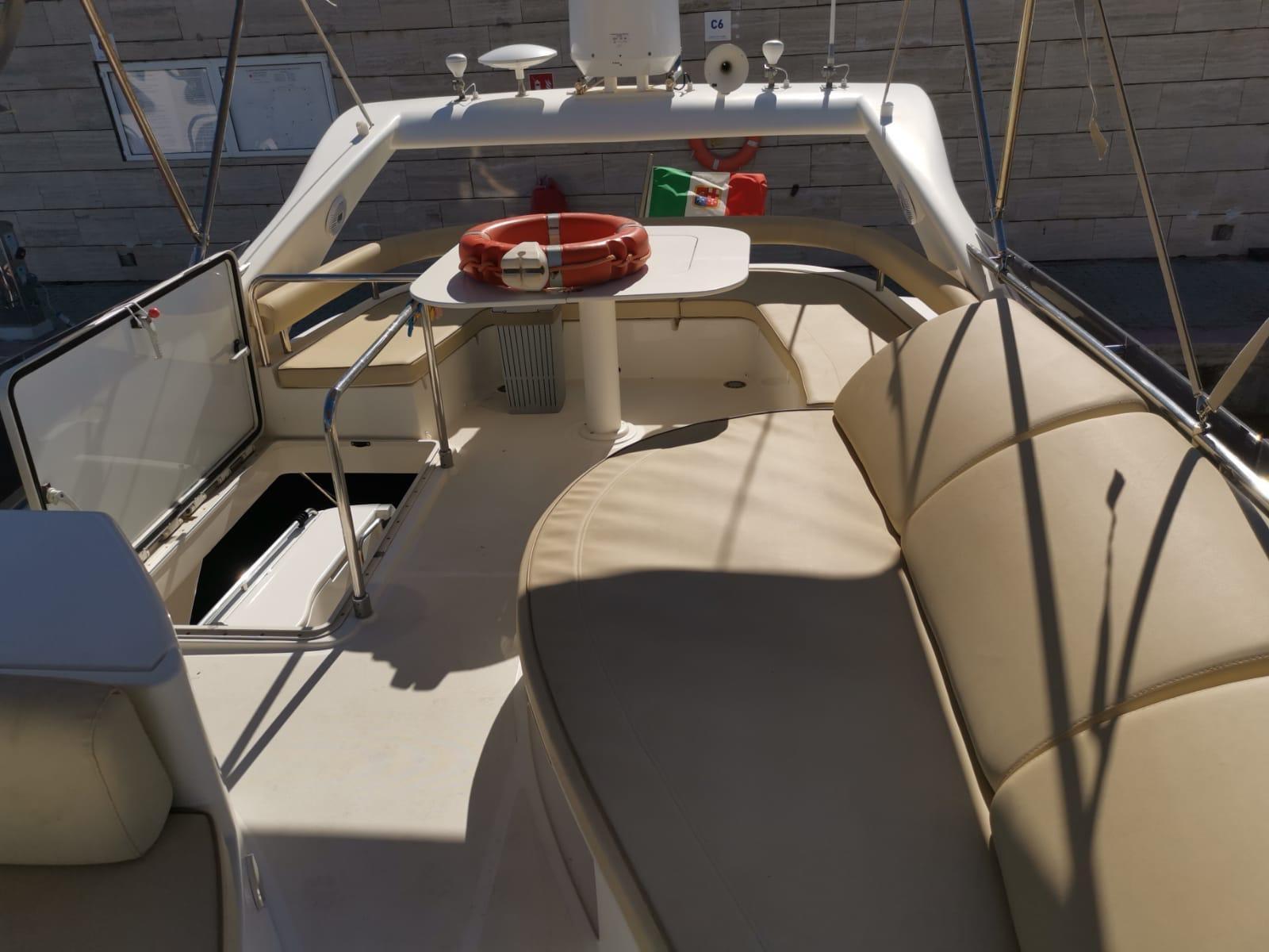 Engine Alarm, Bilge Alarm, Alternator, Water pressure pump, Deck Shower, Twin Steering, Hydraulic Flaps (N°2), Fire Extinguishing System, Flaps Indicators, Washbasin in the cockpit, Courtesy Lights, Gangway, Platform, Automatic Bilge Pump, Manual Bilge Pump, Teak Cockpit, Shorepower connector, Voltage Rectifier, Electric Windlass, swimming ladder, cockpit table, Horn, Stern Winches, Bow Winches.