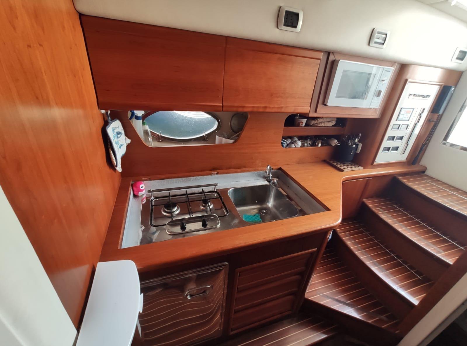 Galley, Burner, Deck Refrigerator, ICE Maker.