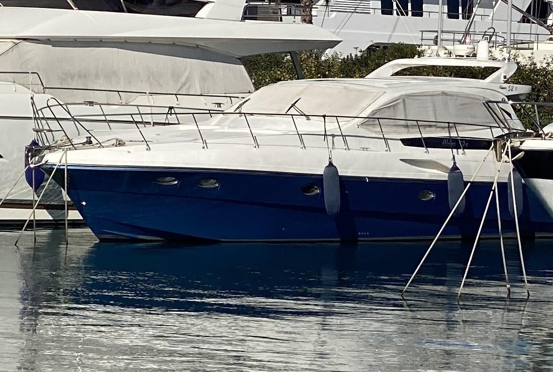 Engine Alarm, Bilge Alarm, Water pressure pump, Special Colour (CARTA ZUCCHERO), Deck Shower, Hydraulic Flaps, Hard top, Fire Extinguishing System, Courtesy Lights, Gangway (IDRAULICA A SCOMPARSA), Platform (IDRAULICA AFFONDABILE), Automatic Bilge Pump, Manual Bilge Pump, Entry door, Teak Cockpit, Shorepower connector, Voltage Rectifier, Rollbar, Electric Windlass, swimming ladder, Saddles for tender, cockpit table (ELETTRICO), Tender, guard rails with gates, Horn, Stern Winches.