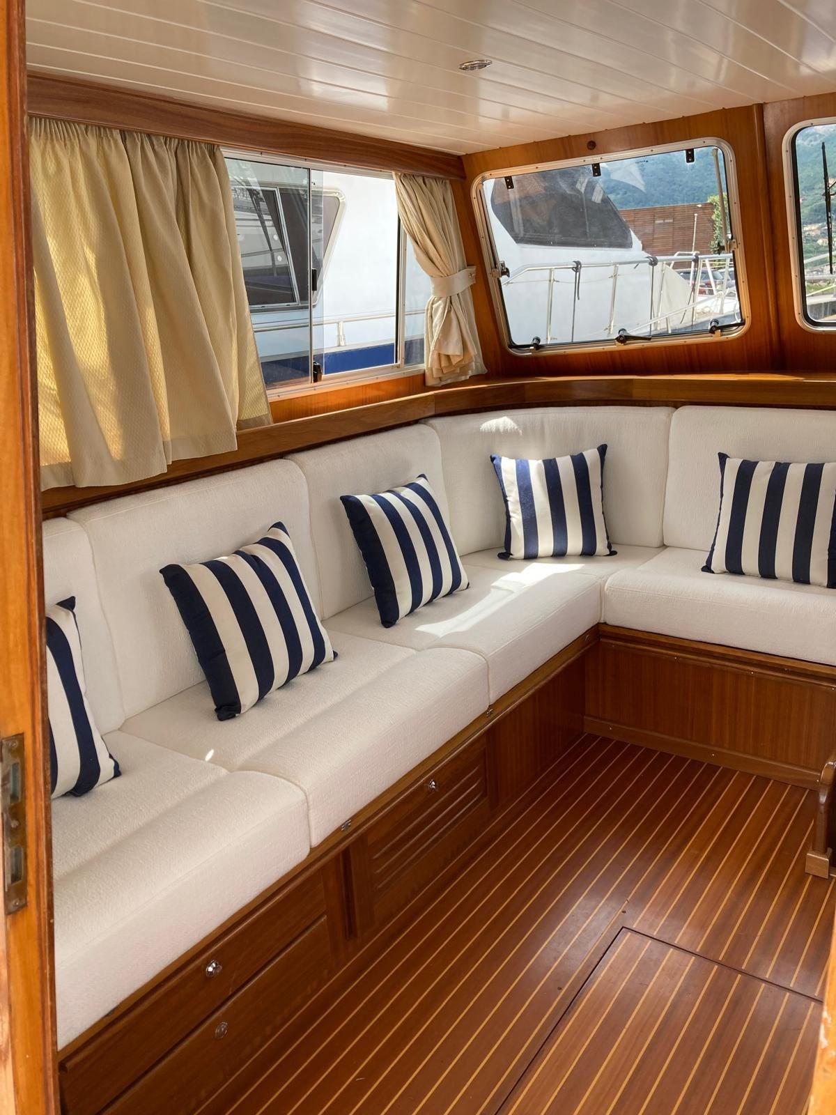THE MENORQUIN 160 IS A BOAT OF PRESTIGE AND TRADITION, MADE FAMOUS BY THE RENOWNED SHIPYARD. ITS PHILOSOPHY, WHICH HAS ALWAYS BEEN AT THE FOREFRONT, IS EXPRESSED THROUGH A CLASSIC, DISCREET AND ELEGANT LINE, WHICH INVITES YOU TO EXPERIENCE THE SEA AND HOLIDAYS IN TOTAL RELAXATION, ENJOYING EVERY MOMENT WITHOUT HASTE. THIS YACHT ALLOWS YOU TO ENTER INTO COMPLETE SYNERGY WITH NATURE, GIVING THE OWNER AND HIS GUESTS AN AUTHENTIC AND TIMELESS SAILING EXPERIENCE.
