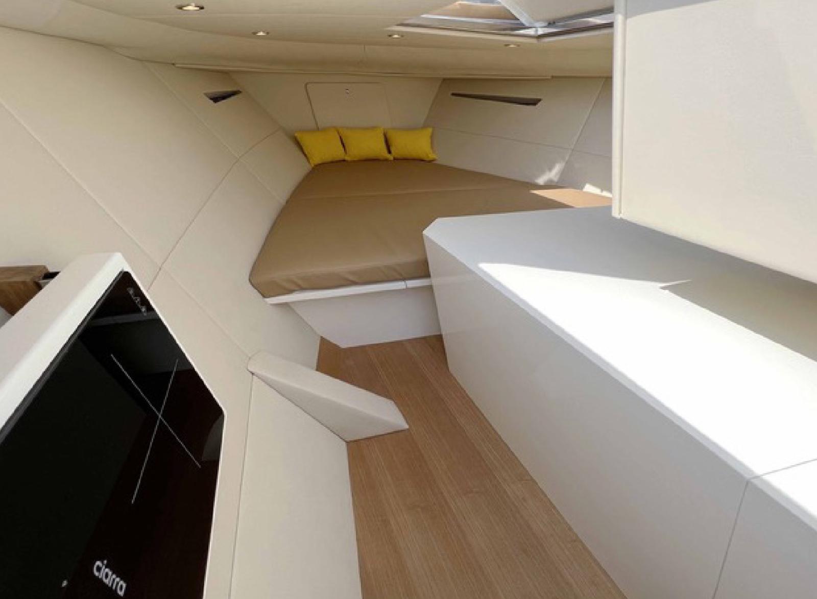 - COCKPIT, DECKHOUSE, SWIM PLATFORM, DASHBOARD, SINK COVER AND CONTROL BOX BASE FINISHED IN TEAK
