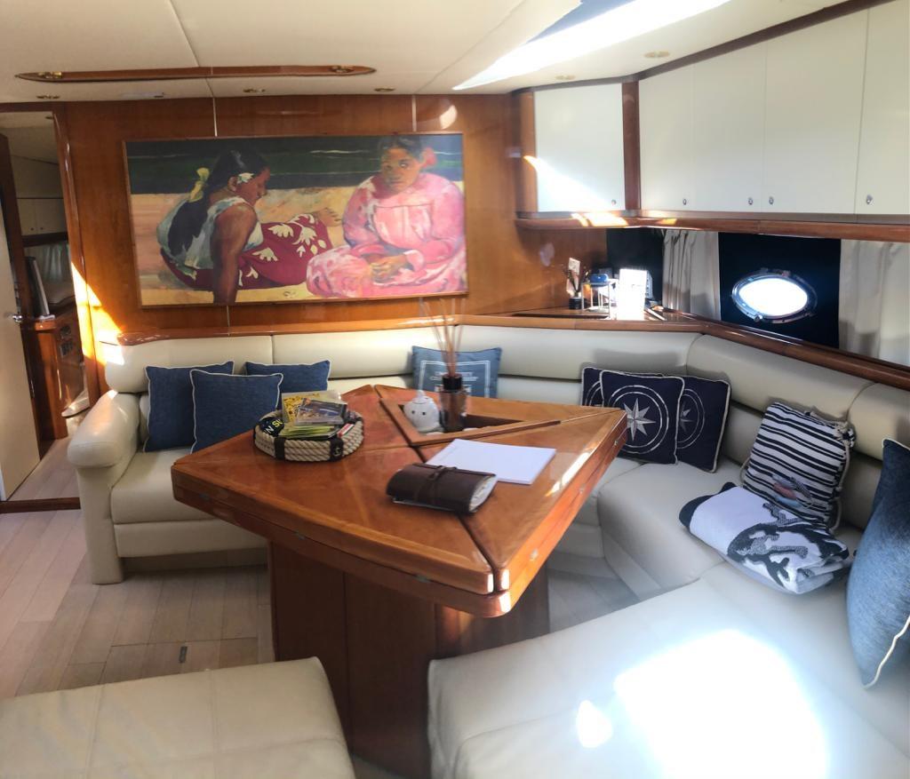 Bilge Alarm, Water pressure pump, Teak Side Decks, Special Colour, Deck Shower, Directional Spotlight, Hydraulic Flaps, Hard top, Fire Extinguishing System, Underwater lights, Platform, Automatic Bilge Pump, Teak Cockpit, Shorepower connector, Electric Windlass, swimming ladder, cockpit table, Stern Winches.