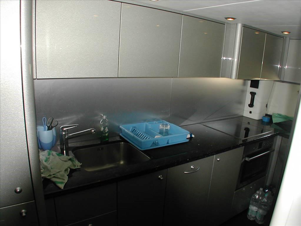 Galley, Deck Refrigerator, Dishwasher, Electric hot plate, Ceramic hot plate.