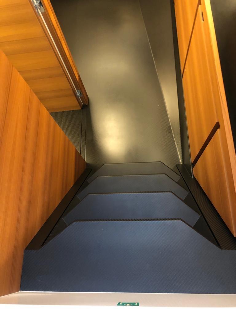 Engine Alarm, Bilge Alarm, Water pressure pump, Teak Side Decks, Deck Shower, Directional Spotlight, Hydraulic Flaps, Hard top, Fire Extinguishing System, Flaps Indicators, Courtesy Lights, Underwater lights, Gangway, Teak Cockpit, Shorepower connector, Electric Windlass, swimming ladder, cockpit table.