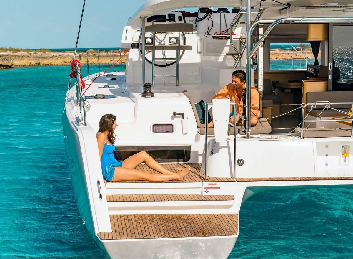 Connecting the interior and the ocean, the aft cockpit of the Lagoon 42 Millenium multiplies the relaxation areas. Its versatility allows you to have a large table that can accommodate up to ten guests while maintaining good circulation in the cockpit
