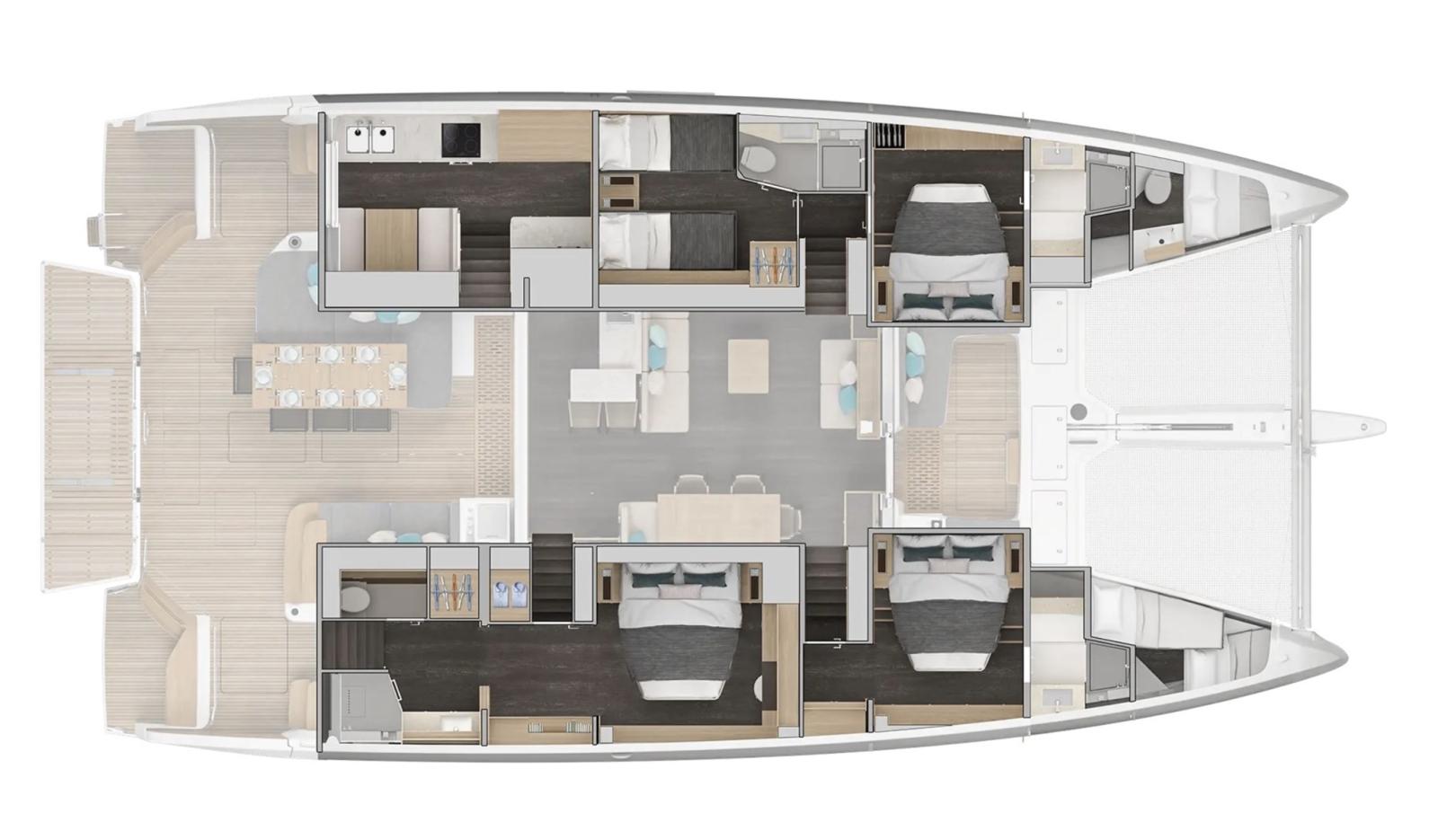 OWNER'S VERSION 4 CABINS WITH SEPARATE GALLEY BELOW DECK