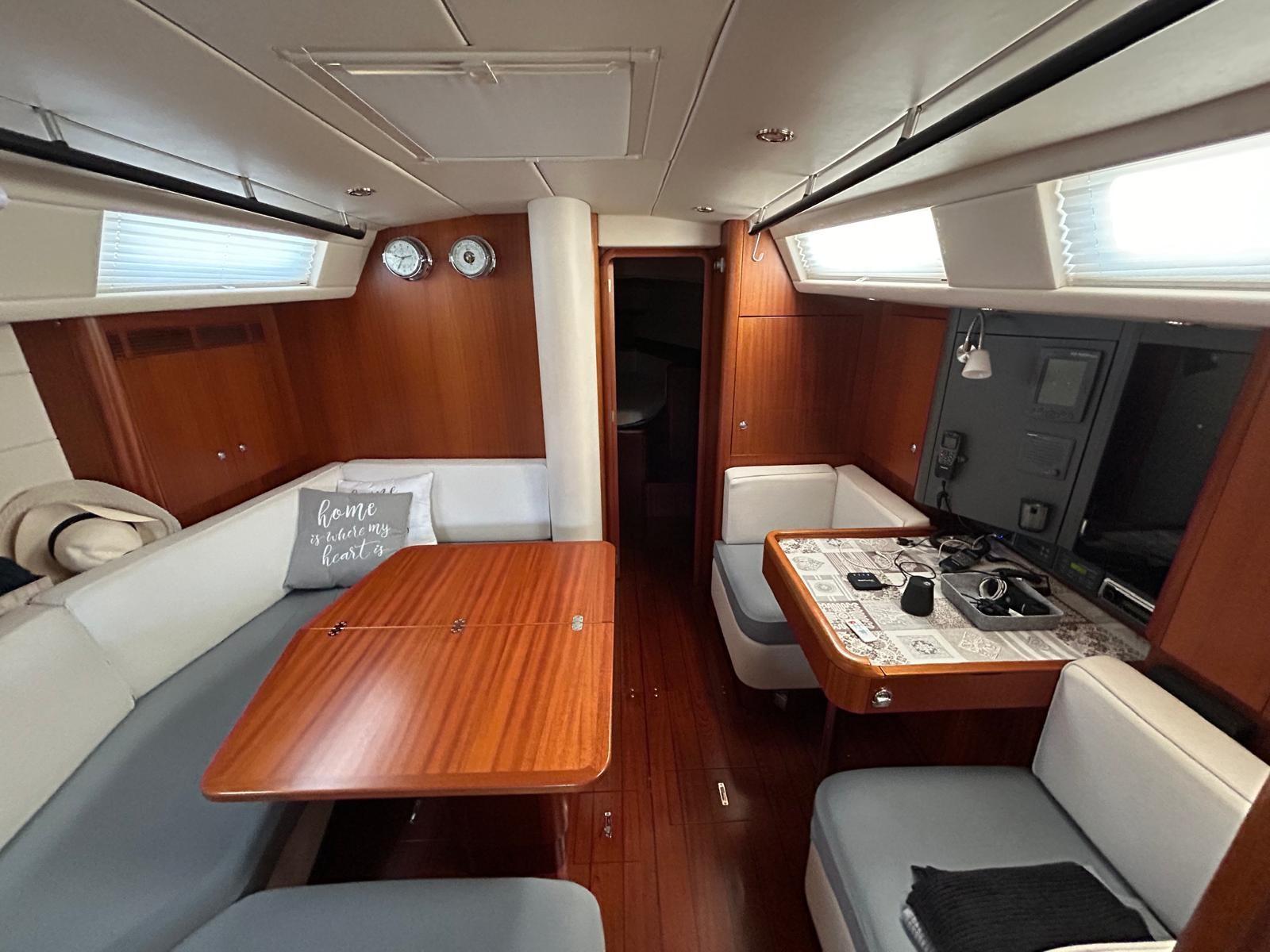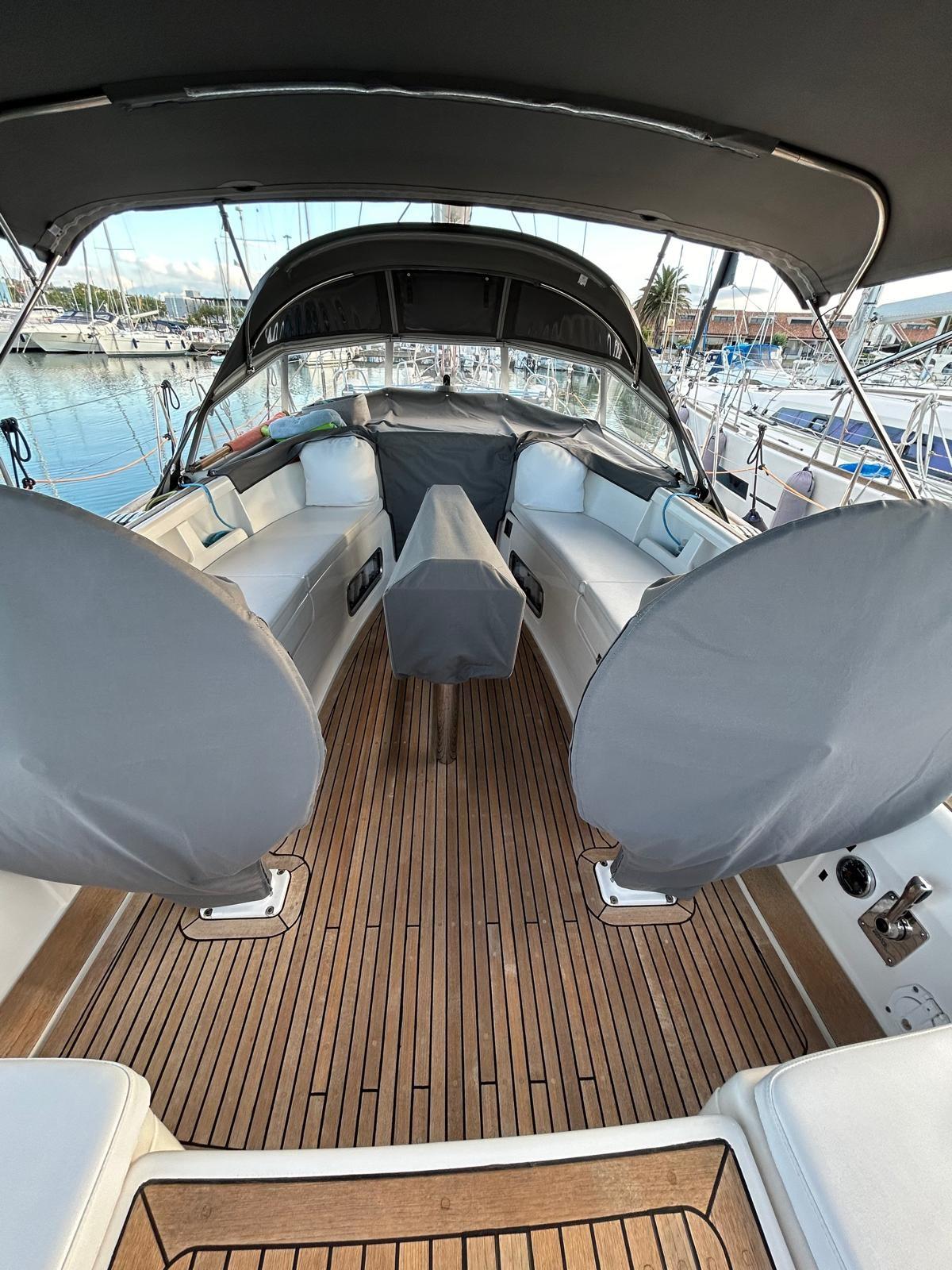 Batteries (AGM 2025), 2 Solar panels (2X100W SOLBIAN - VICRON SMART CHARGER 2024), Automatic Bilge Pump, Manual Bilge Pump, Teak deck, Teak Cockpit, Shorepower connector, Electric Windlass, Strand rigging, swimming ladder, Outboard Engine Support Bracket, cockpit table, 4 Winch Electric (ANDERSEN 2X58 + 2X46 INOX), Windex.