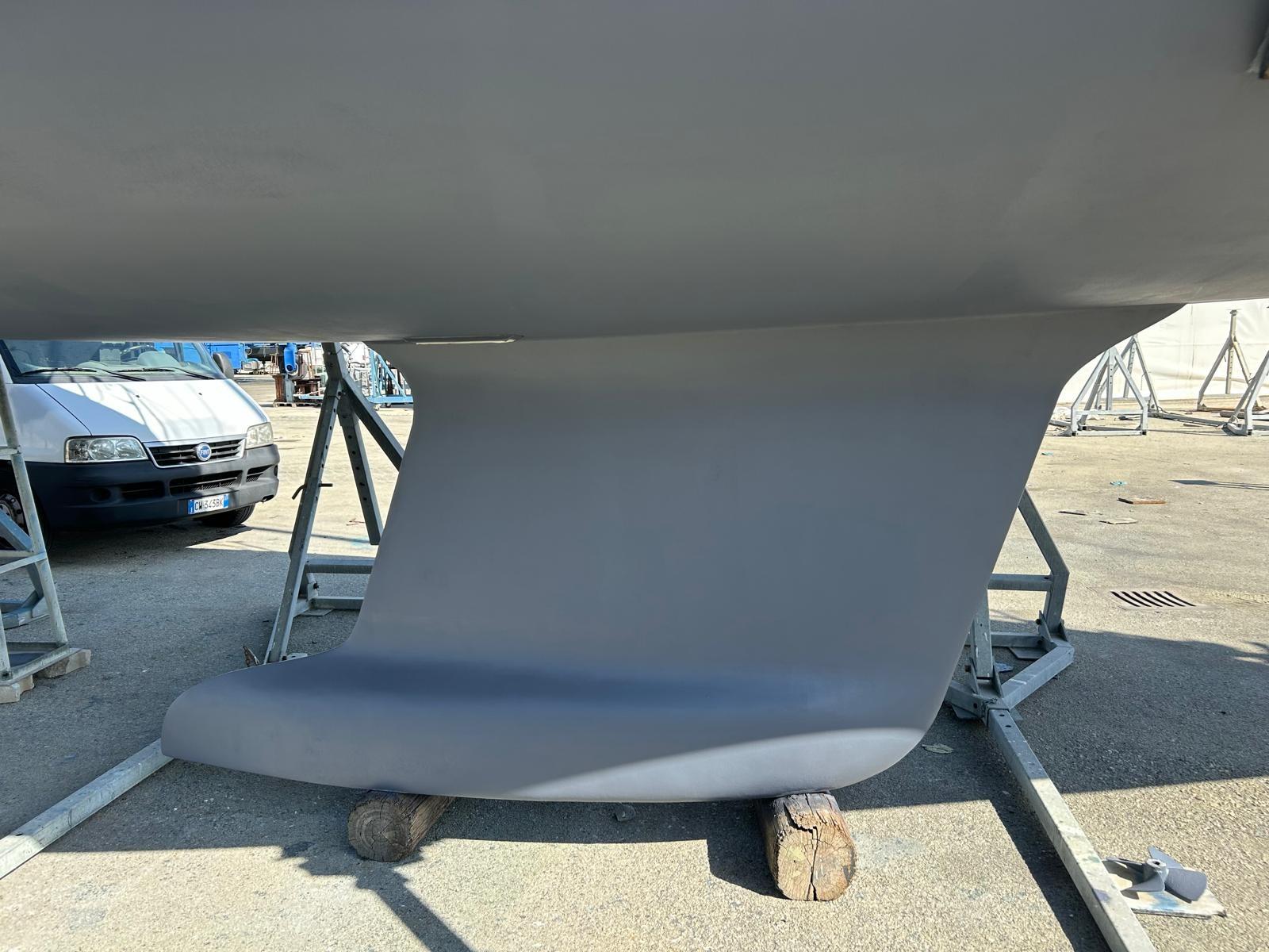 -living work brought back to gelcoat and renewal of the epoxy primer with a complete cycle International 5 coats for hull and 5 coats for keel and bulb (2021);