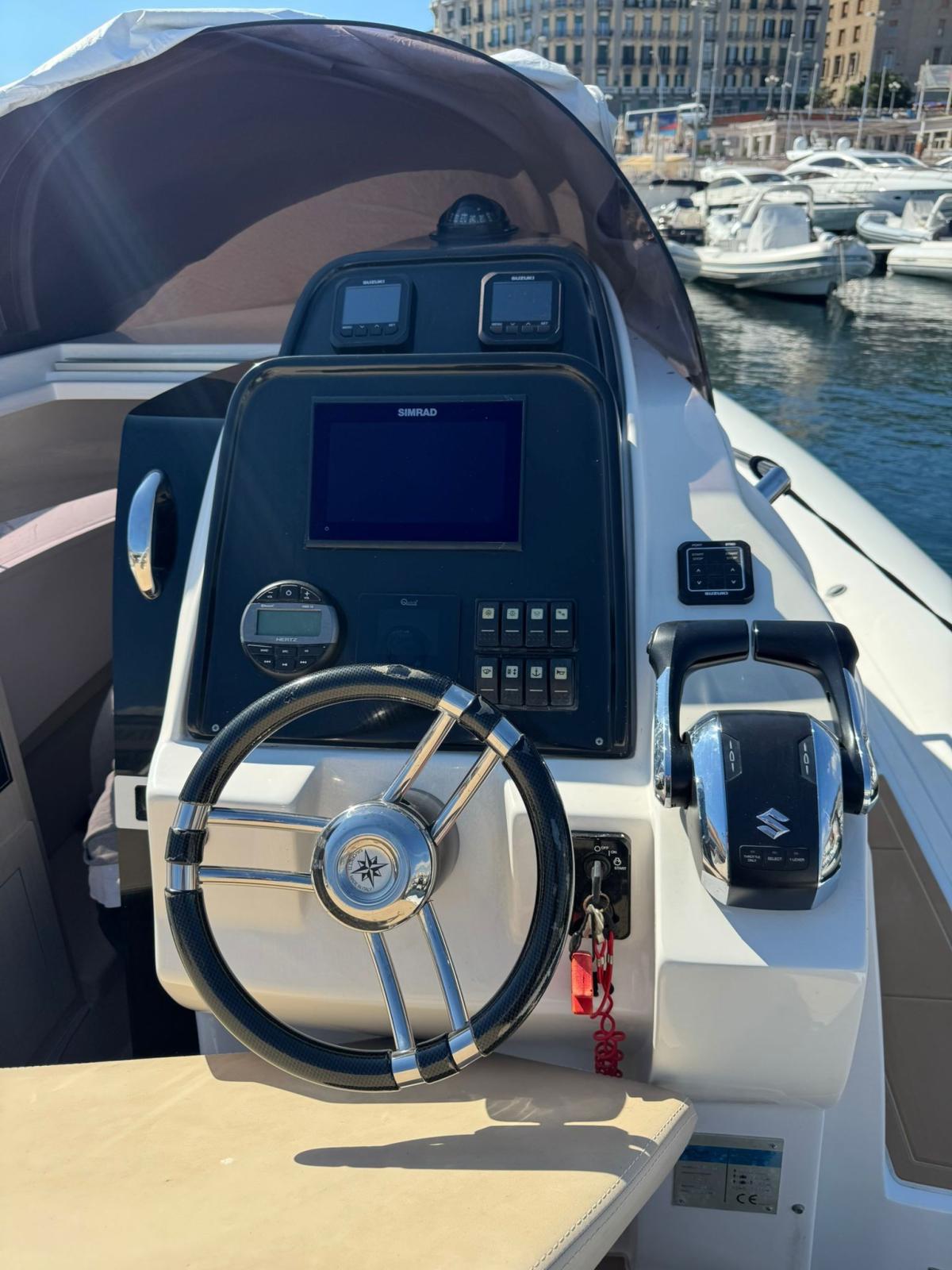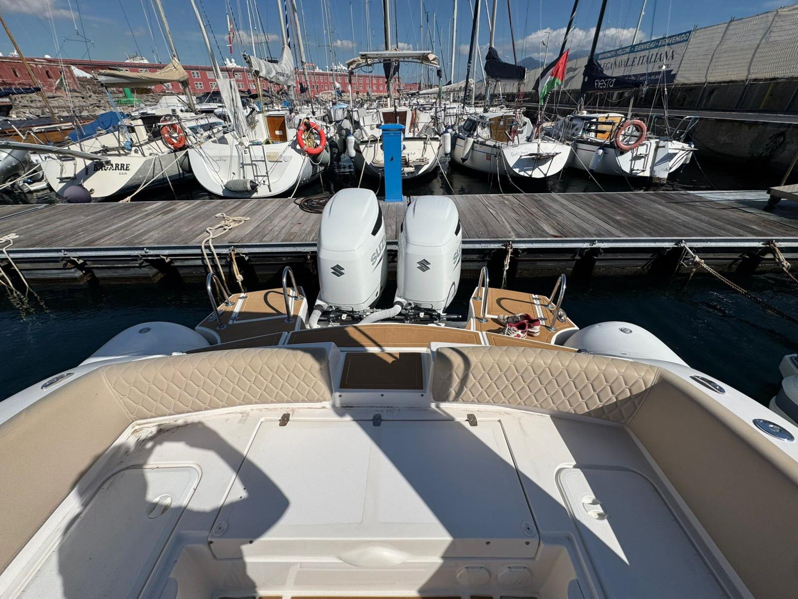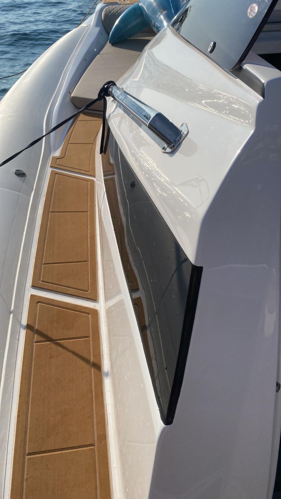 Engine Alarm, Bilge Alarm, Water pressure pump, 2 Deck Shower (A POPPA E PRUA), Courtesy Lights (LED), Automatic Bilge Pump, Manual Bilge Pump, Shorepower connector, Rollbar (CON LUCI), Electric Windlass, swimming ladder (DOPPIA), Table.