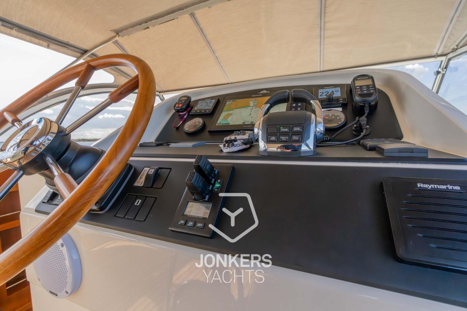 AIS (Raymarine AIS700), Rudder angle indicator (Raymarine p70R), Compass (Raymarine p70R), Electronic engine control (Volvo Penta), Odometer (Raymarine i70S), DSC vhf (Raymarine Ray90 DSC), Depth Sounder (Raymarine i70S), GPS (Raymarine), Log (Raymarine i70S), Autopilot (Raymarine p70R), Chartplotter (Raymarine Axiom 12 Pro RVX MFD), Control panel, Radar (Raymarine Quantum 2 (Doppler) CHIRP), Co-pilot seat, Wind Station (Raymarine), Engine Measuring Instruments (Connected via Raymarine MFD), Yacht controller (Yacht Controller Dualband remote control for engines and proportional bow and stern thruster. When bow and stern thrusters are operated via the Yachtcontroller, the desired power can be set on the Side Power control panel. This makes it easy to sail sideways when bow and stern thrusters are operated simultaneously).