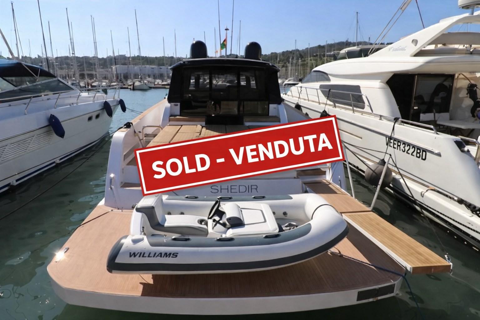 Engine Alarm, Bilge Alarm, Alternator, Anchor (TREFOIL 25 KG, 50 M CATENA 10MM con videocamera), Auto Dynamic Trim Interceptor, Water pressure pump, 6 Batteries, 6 Folding cleats, Teak Side Decks (FLEXITEAK), Battery charger (80 HA), Shore power cable, Deck Shower, Hard top, Fire Extinguishing System, 8 Fenders, Gangway (IDRAULICA), Platform, 3 Automatic Bilge Pump, Teak deck (FLEXITEAK), Teak Cockpit (FLEXITEAK), Shorepower connector, Electric Windlass, swimming ladder, Saddles for tender (Originali Williams), cockpit table, Tender (Williams 280).