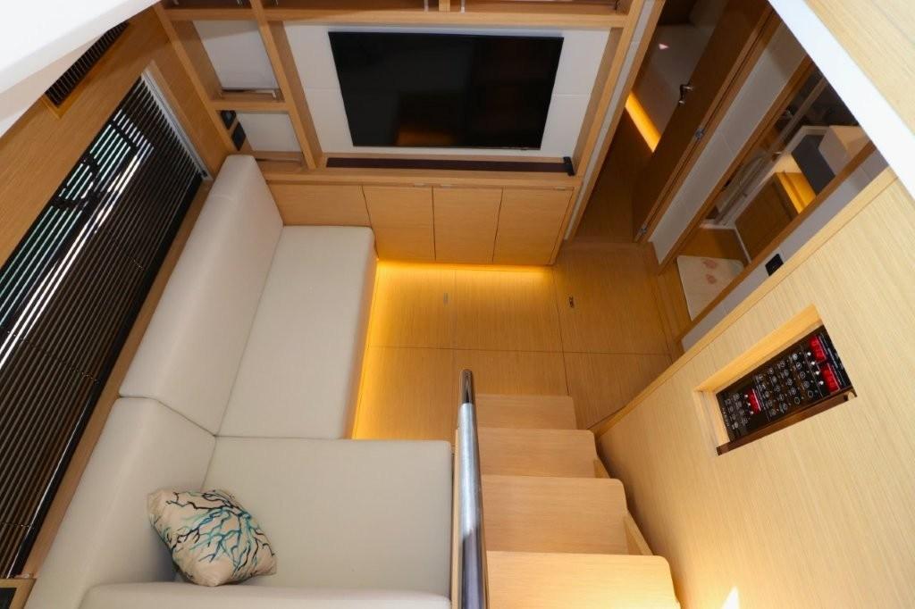 Satellite Decoder, Hi-Fi, 2 TV (TV 43" con sistema Sali-scendi a soffitto in cabina armatoriale, completa di antenna ,TV 43'' in area lounge sottocoperta).