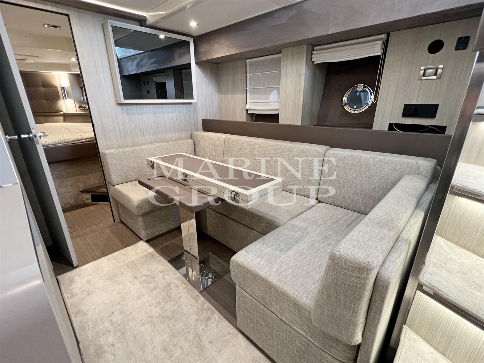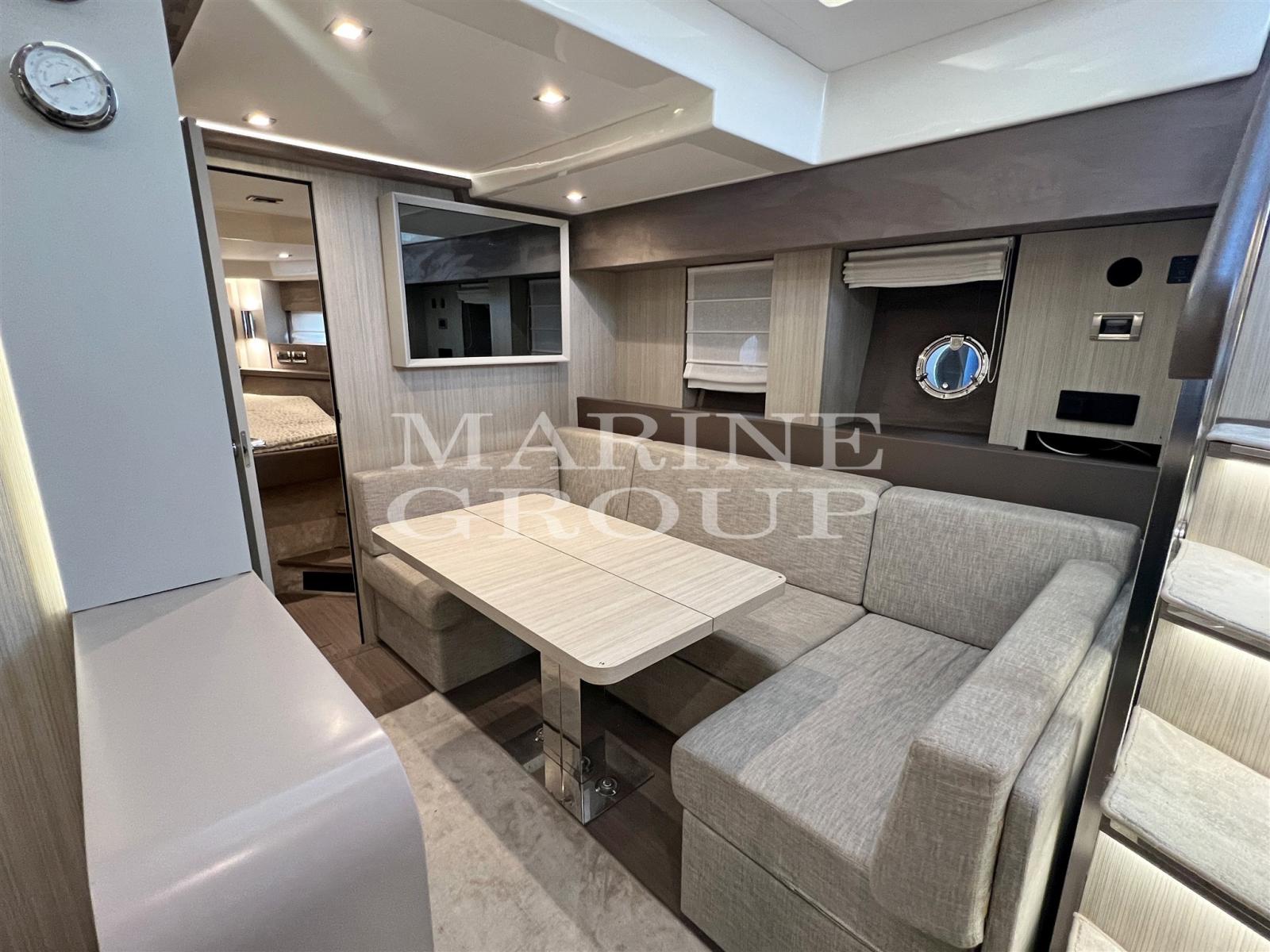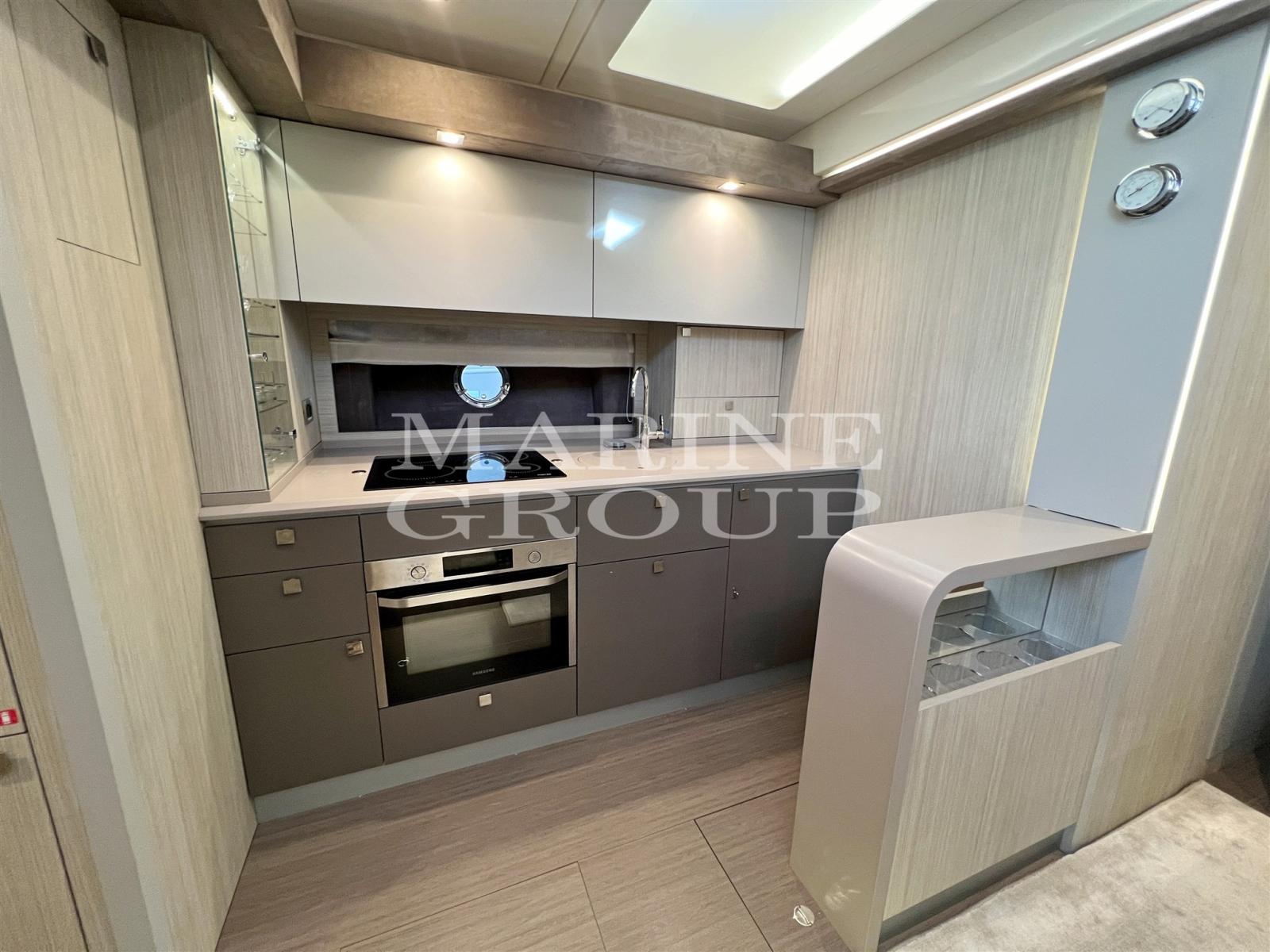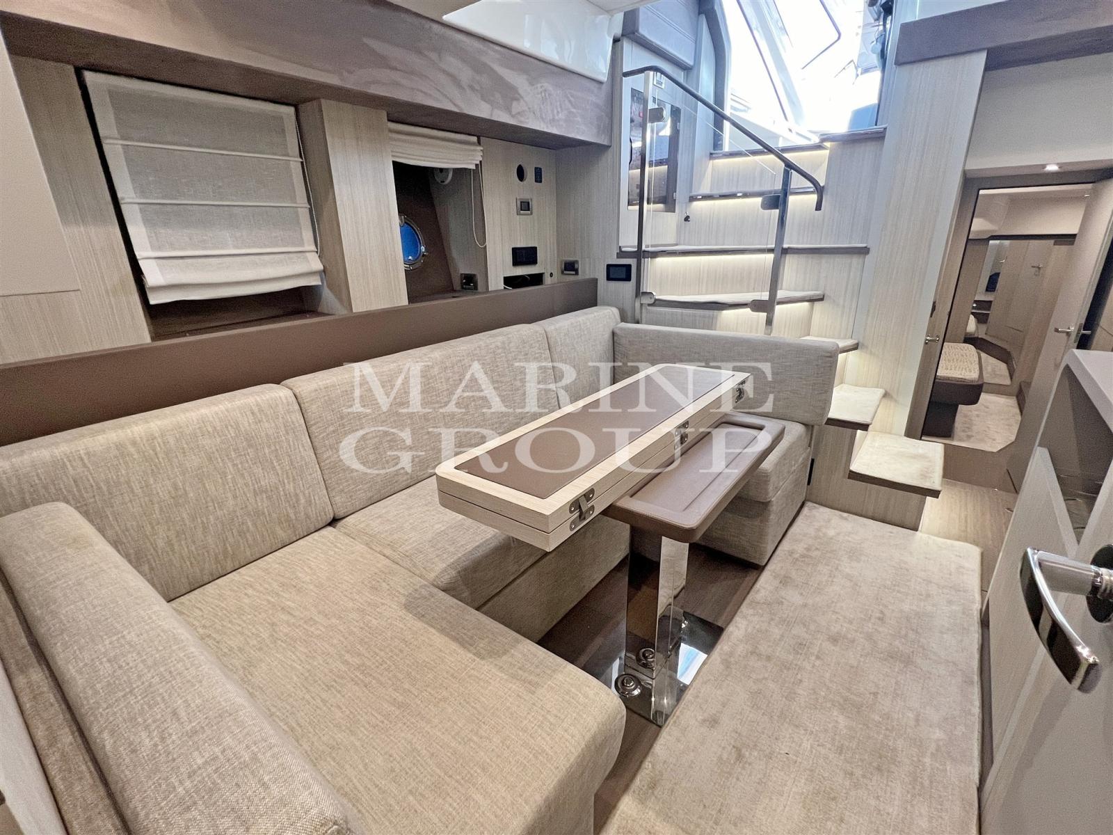 Speakers, Satellite TV Antenna, Air Conditioning, BBQ/ Grill, Bimini (forward), Warm Water Heater, Reversible Air Conditioning, Freezer, Cockpit Cover, Complete Cushions, Stern Cushions, Bow Cushions, Cockpit Cushions, Oven, External Refrigerator, Internal Refrigerator, ICE Maker, TV System, Inverter, Dishwasher, Blinds, Electric Hotplate, 12v Internal Sockets, 220v Internal Sockets, AM/FM Radio, Stereo, Window Covers, Electric Curtain (cockpit), Awning (bow), TV, AIS, Radar antenna, Teak side walkways, Battery charger, Special colour (Grey), Electronic engine control, Chain counter, Deck shower, Bow thruster, Adjustable headlight, Hydraulic flaps, Tender garage, Sink in the cockpit, Log, Courtesy lights, Gangway, Platform (sinking), Teak cockpit, 220V dock socket, Shore water intake, Electric windlass, Swimming ladder, Co-pilot seat, Stabilizers (Seakeeper), Cockpit table (electric), 2 Winches stern mooring