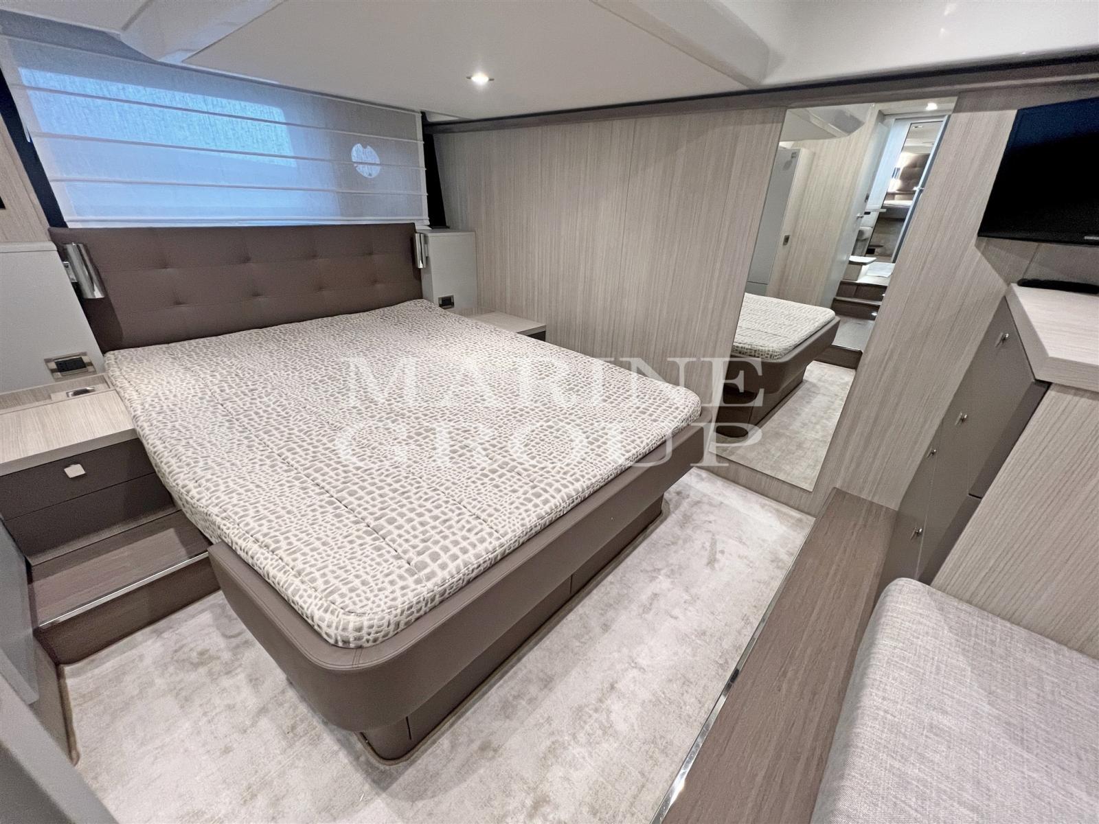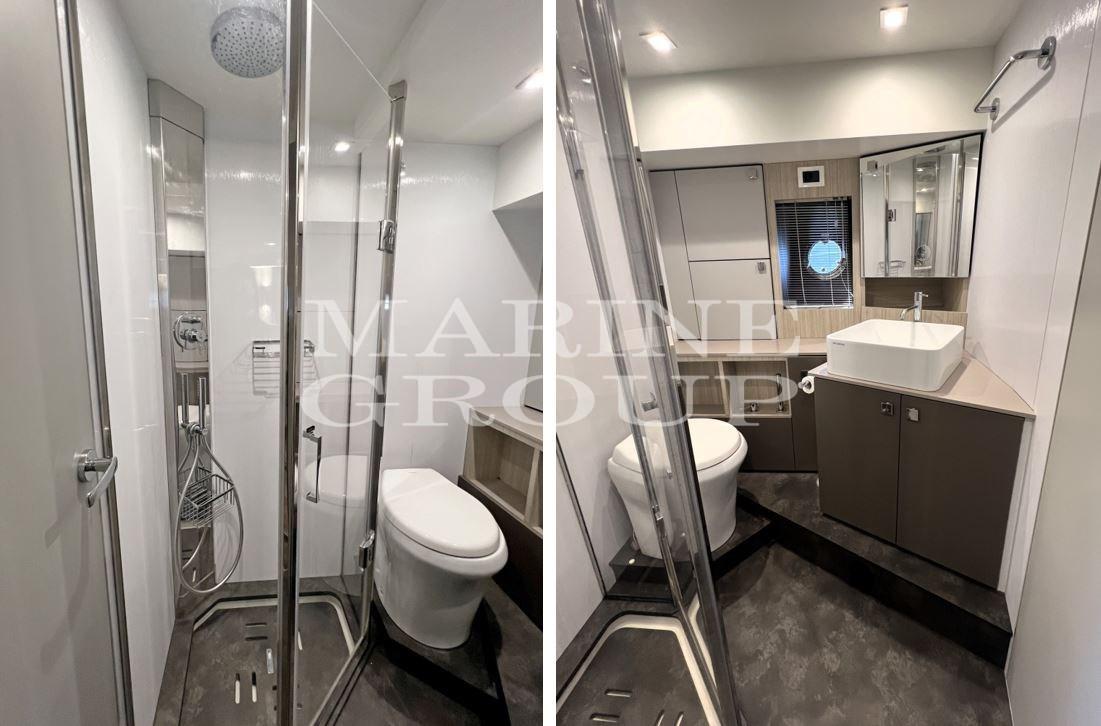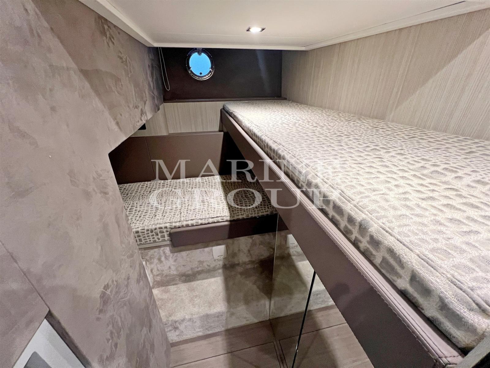 Below deck everything has been renovated with the fine touch of Christian Grande; Fully equipped peninsula kitchen; large "U" shaped dinette opposite; full-beam aft master cabin with double bed and ensuite bathroom complete with separate shower cubicle; VIP cabin in the bow with double bed and direct access to the second full bathroom; guest cabin with bunk twin beds; Crew cabin with service.