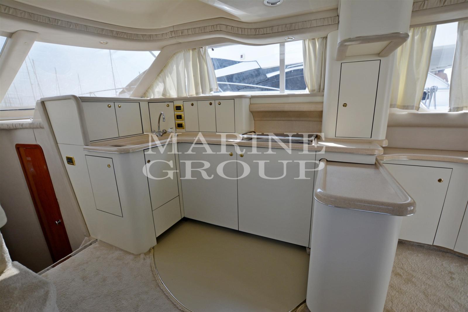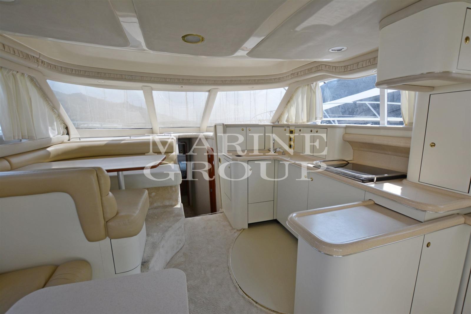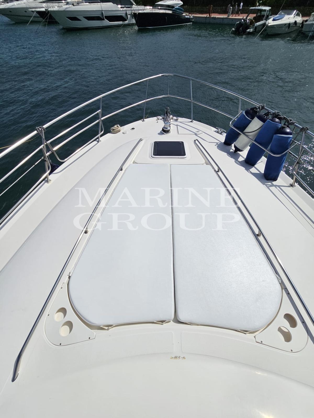 Speakers, Air conditioning, Bimini, Boiler, Complete cushions, Bow cushions, Flybridge cushions, Digital Terrestrial, Watermaker (100 l/h), External refrigerator, Internal refrigerator, TV system, Microwave, Electric hotplate, 12v internal sockets, 220v internal sockets, AM/FM Radio, Stereo, Flybridge Cover, Awning, TV, Battery charger, Chain meter counter, External shower, Bow thruster - bow thruster, Log, Gangway, Platform, Entrance door, Teak cockpit, 220V quay socket, Quay water intake, Rollbar, Electric windlass, Swim ladder, Co-pilot seat, Trumpet