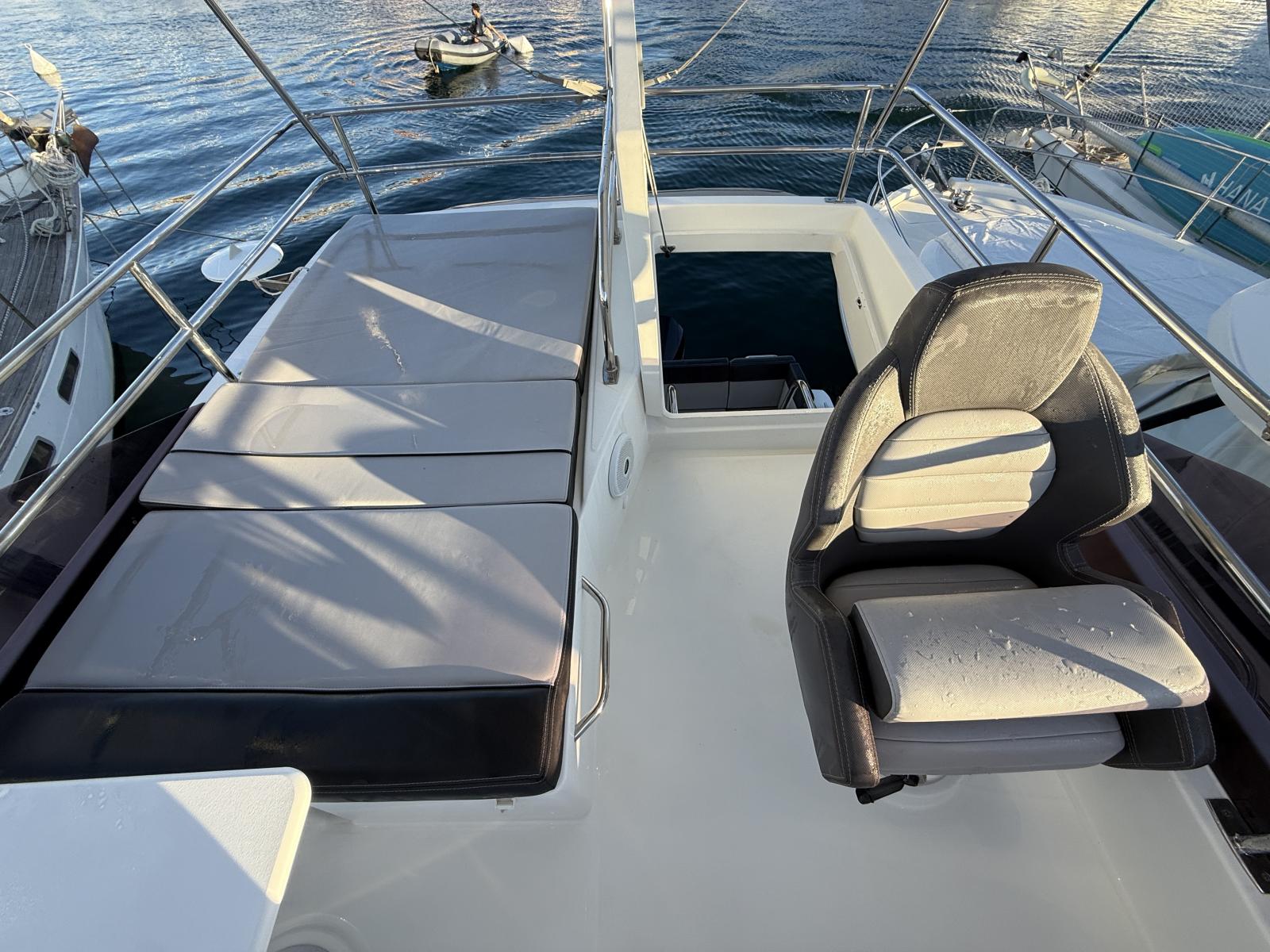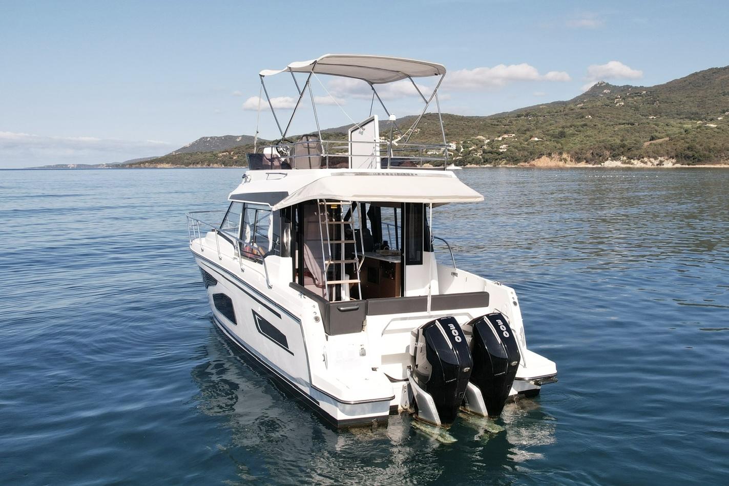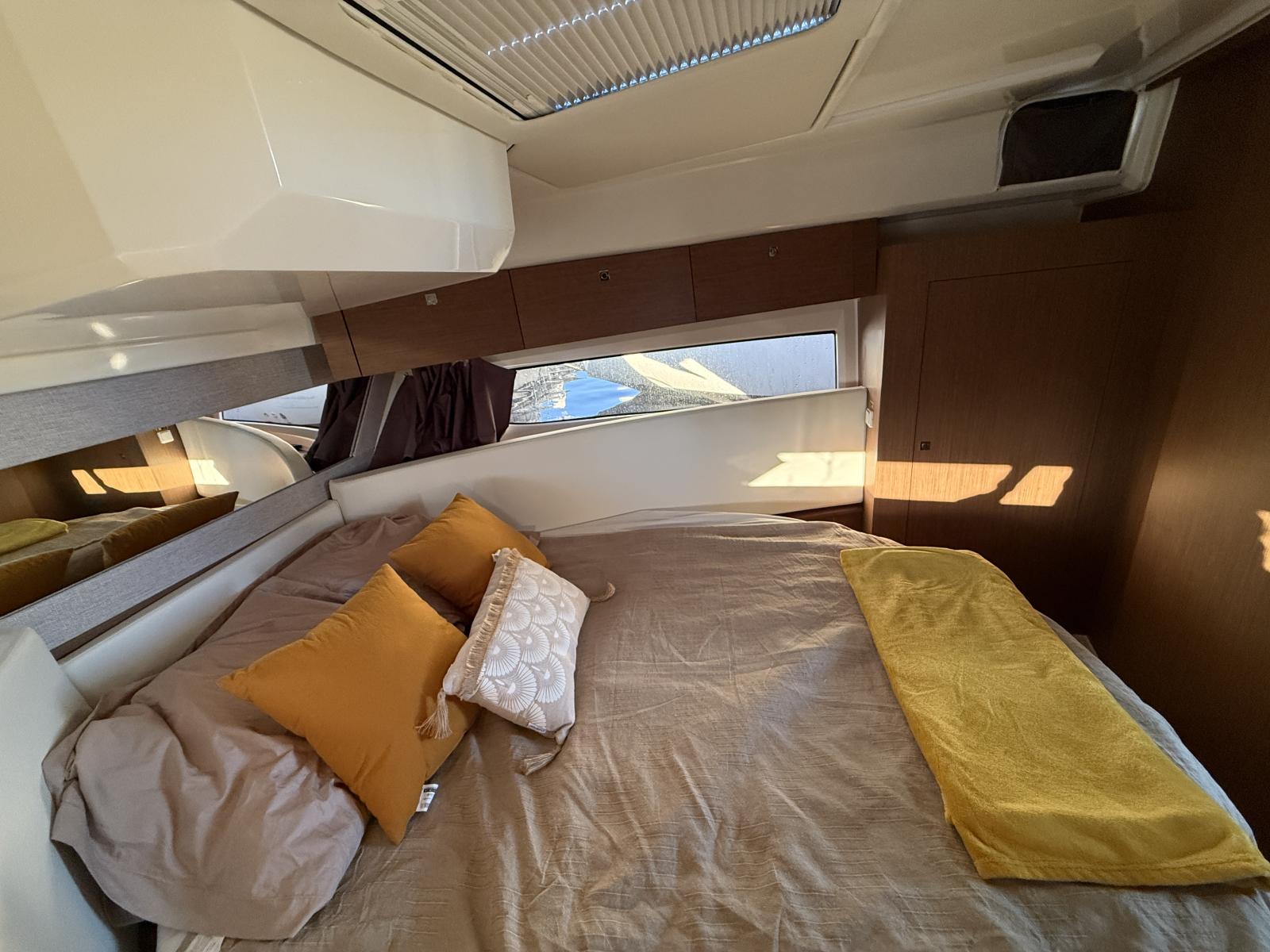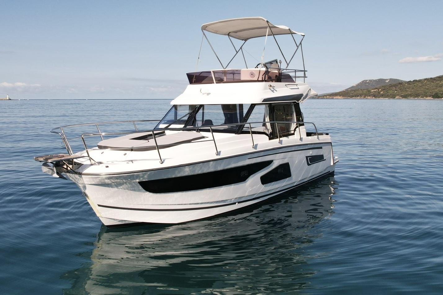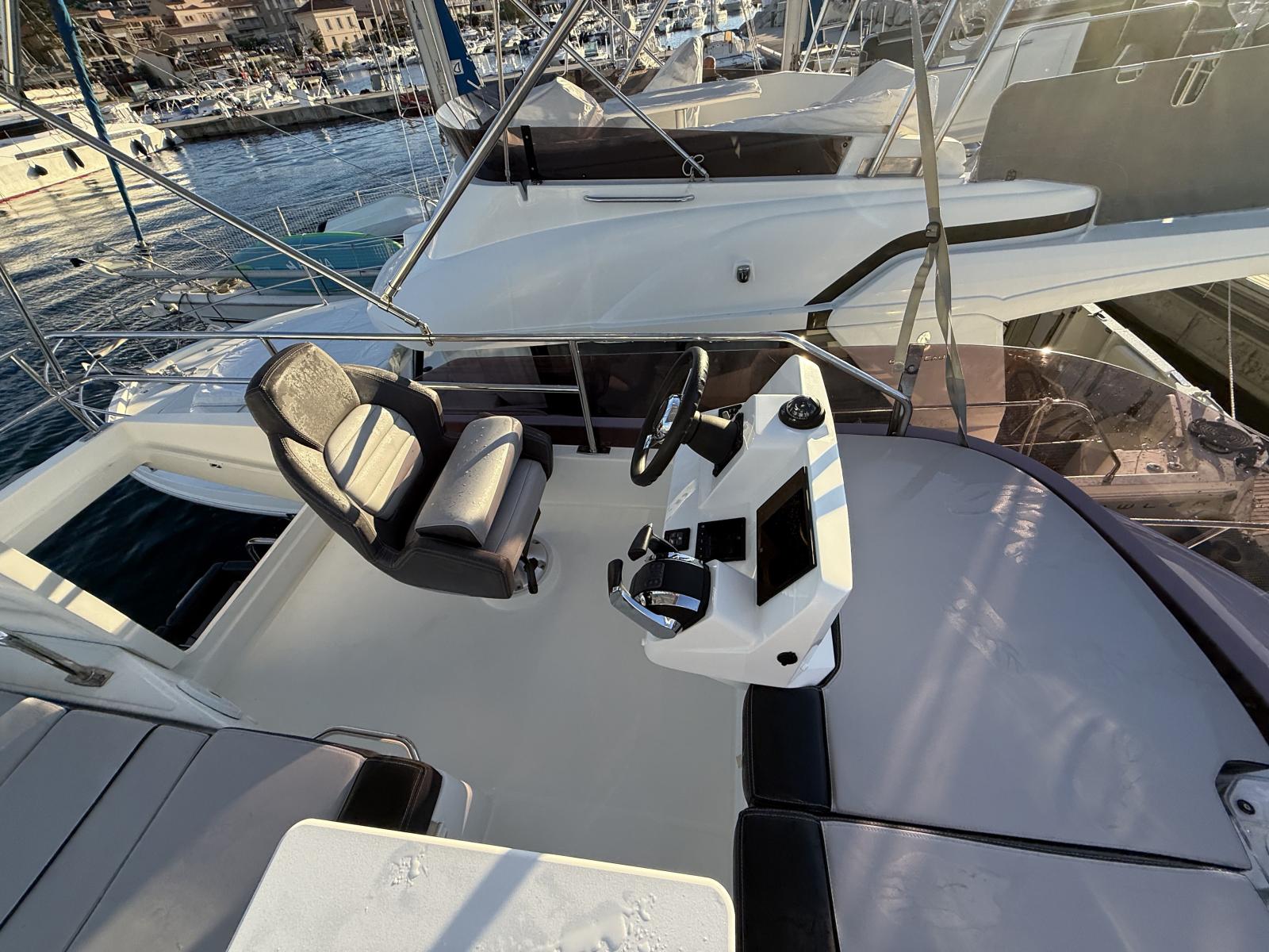 Discover one of the few models on the market to combine a powerful outboard engine with a flybridge and offer three beautiful double cabins. With its exceptional layout, it is perfectly designed to accommodate family and friends for comfortable and elegant cruises.