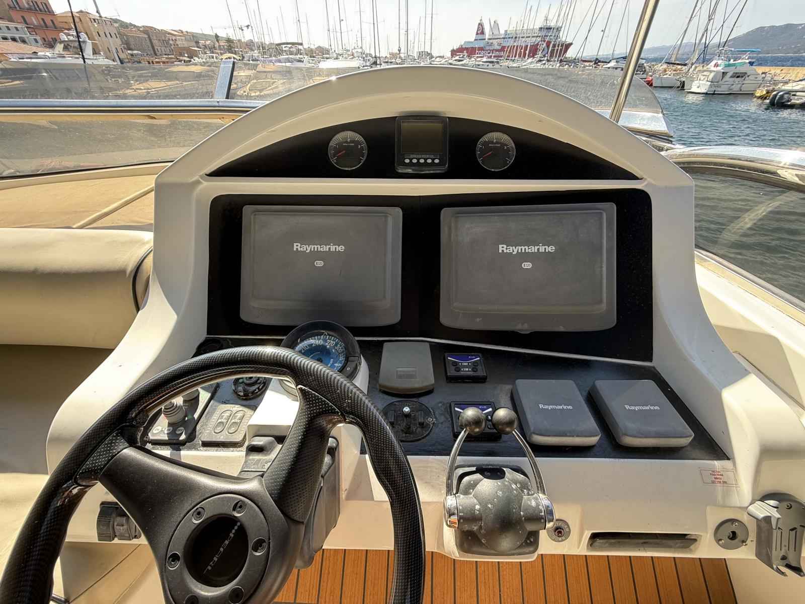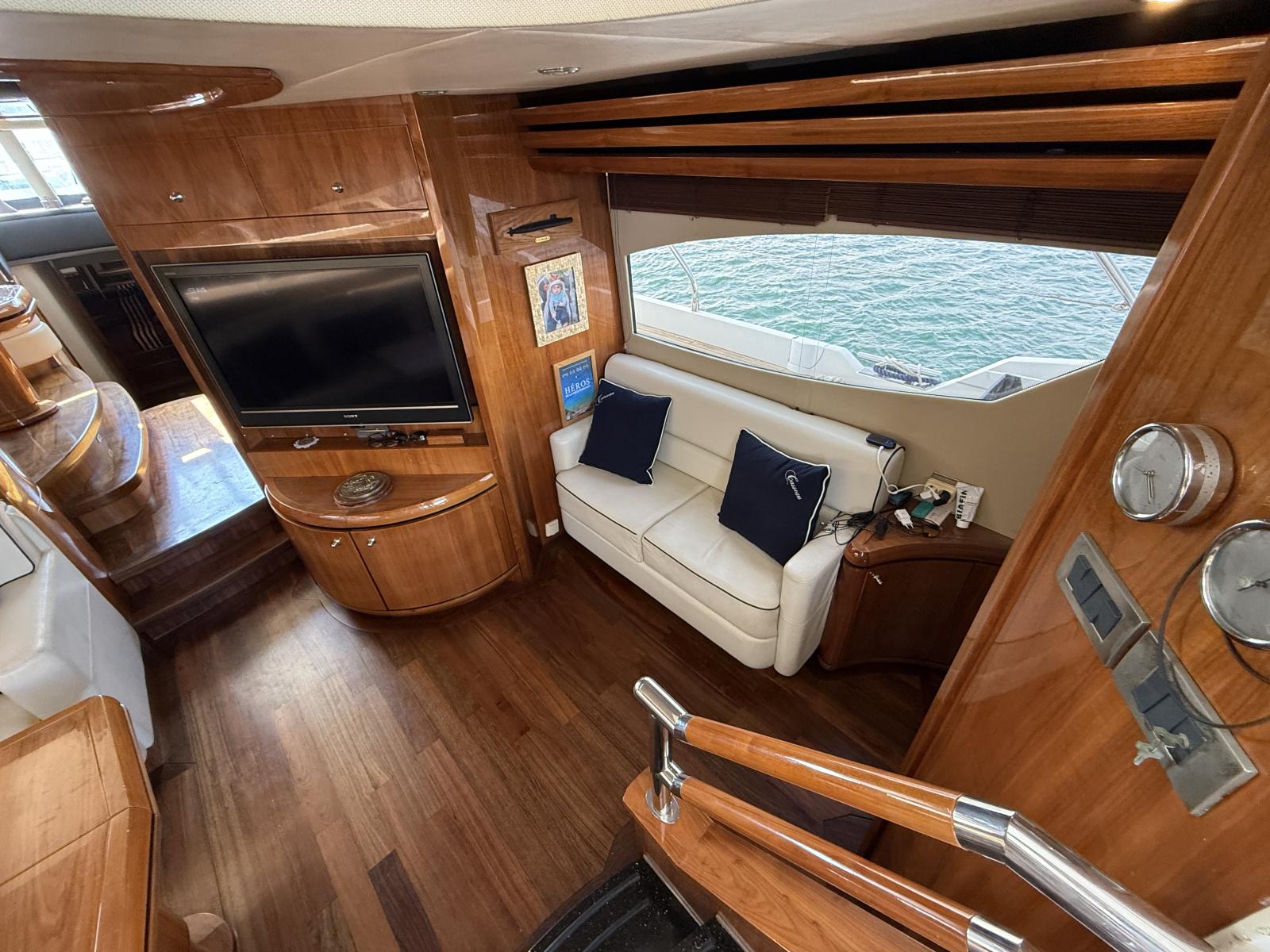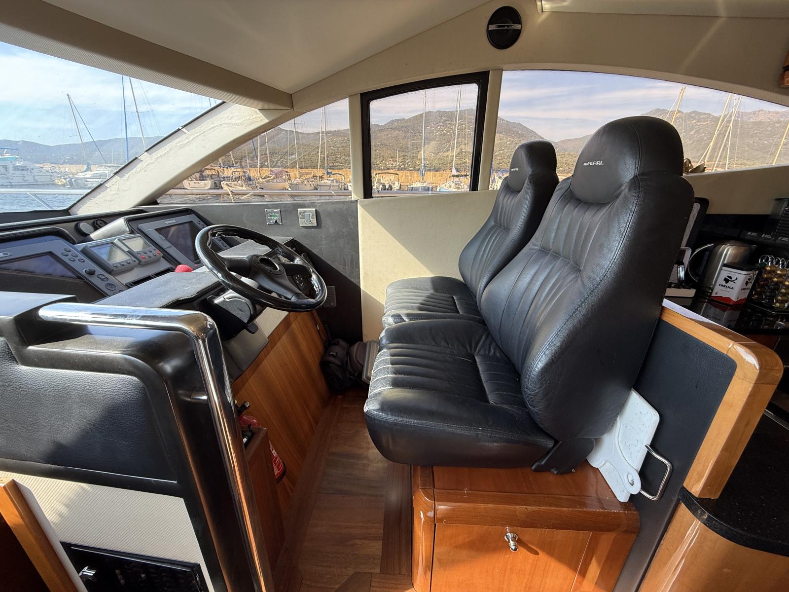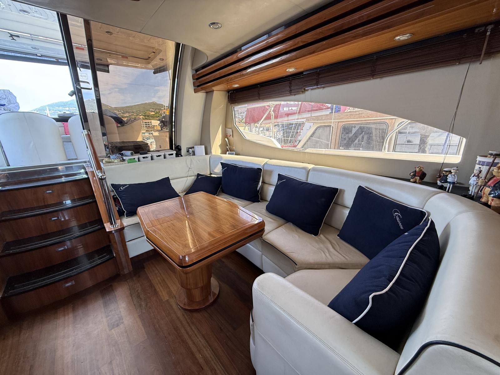 Exteriorly, the yacht offers a spacious flybridge with a dining area and sunbathing areas, a convivial aft deck protected by a large electric hardtop, and a hydraulic swim platform ideal for water sports.