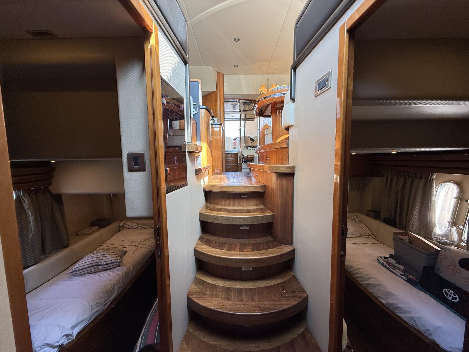 2 cabins with double beds (a large aft master cabin and a forward VIP cabin)