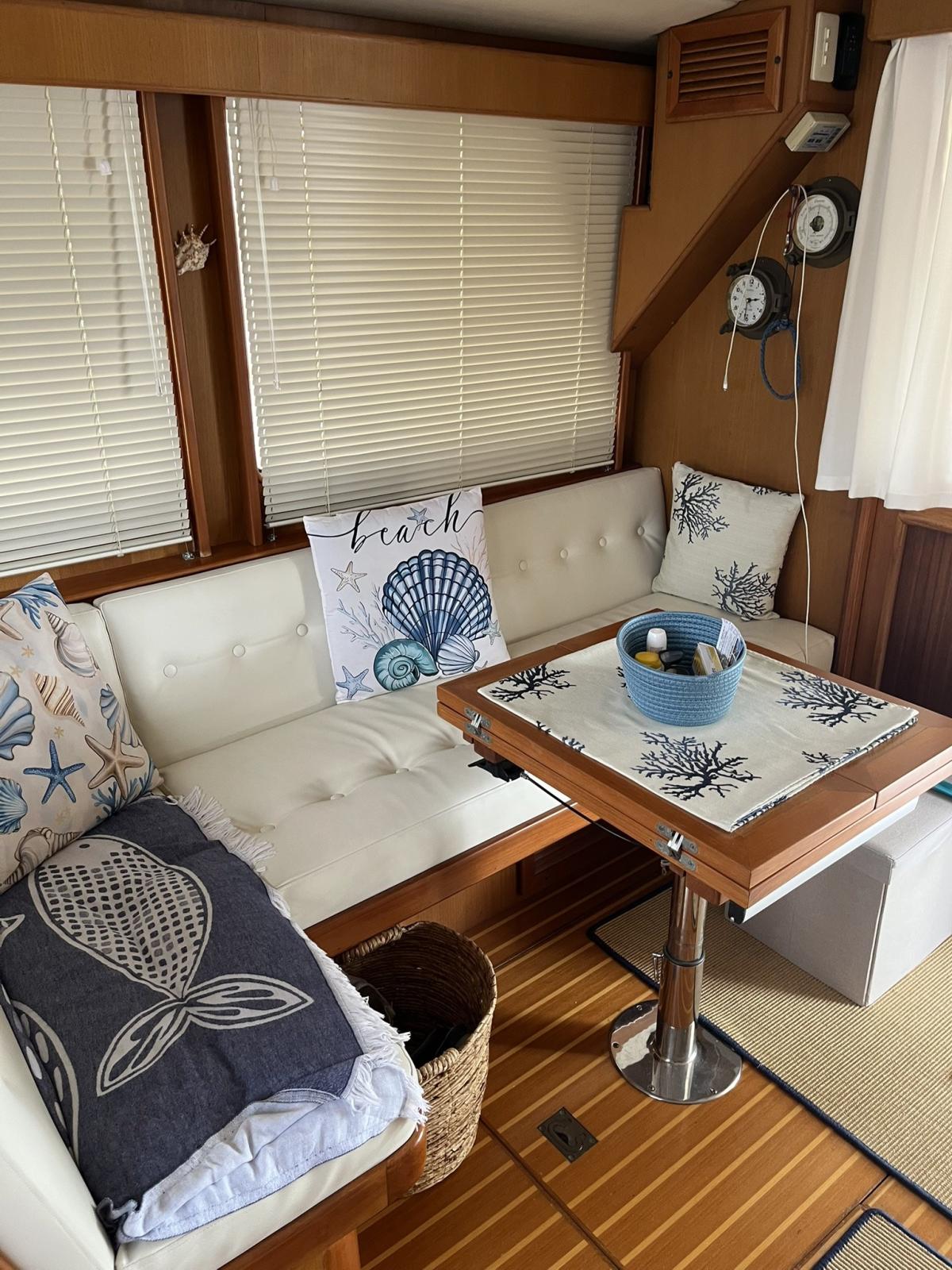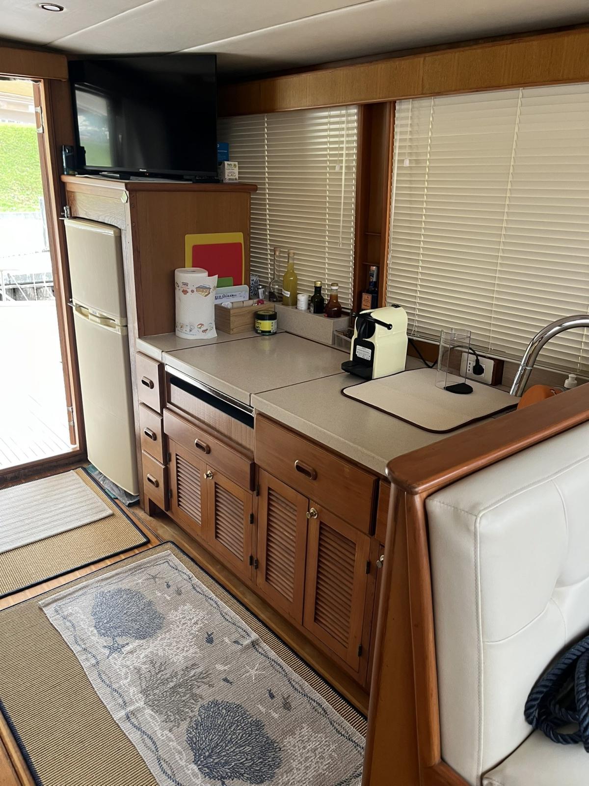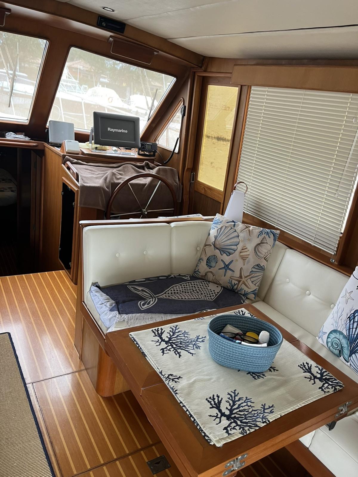 The boat was extensively refitted in 2021 and scrupulously maintained to this day. The main works were: Completely redone electrical system with new cables, electrical sockets, Victron chargers, battery switches, fuse holders, differentials, galvanic isolators, Victron inverters, alarm sensors, Victron Digital Multi Control and Victron 4 combined management system with color screen on the dashboard and remote control. New service batteries, engines and AGM 220 Victron bow thruster. Installation of 2 solar panels. New VHF system and antenna Installation of 2 internet antennas and wireless modem Added a Raymarine E120 GPS bought used New Jabsco autoclave New kitchen, bathroom and cockpit shower taps New navigation lights New bilge manual pump New pipes and hydraulic power unit gangway New side smoked glass and dinette door and side doors repainted. Many of the internal wooden panels have been redone and the cornices have been repainted Repainted The lockers Some ceilings have been redone All the portholes have been dismantled and resealed All the bulbs have been changed with LEDs and new cabin reading spotlights New boat name in steel Side and rear sunshades in shade cloth. Summer blinds for side and front dashboard windows. New sunbathing cushions New winch in cockpit New hob and microwave New bow water tank Cleaning of diesel tanks Replacement of seacocks Overhaul of alternator New air conditioning recirculation pumps Bulwark polishing done every year Cleaning of heat exchangers/intercoolers and overhaul of seawater pumps Replacement of diesel solenoid valves New drain pipes, solenoid valve and electric toilet pump.