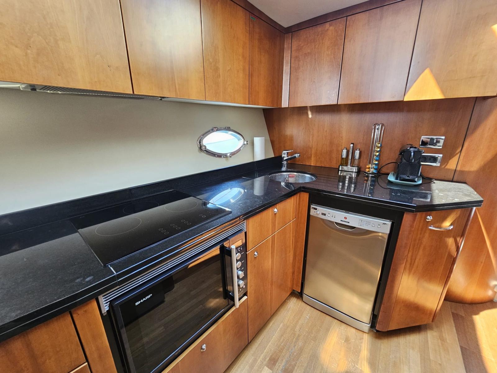 Galley, Burner, Deck Refrigerator, Dishwasher, Washer, Ceramic hot plate.