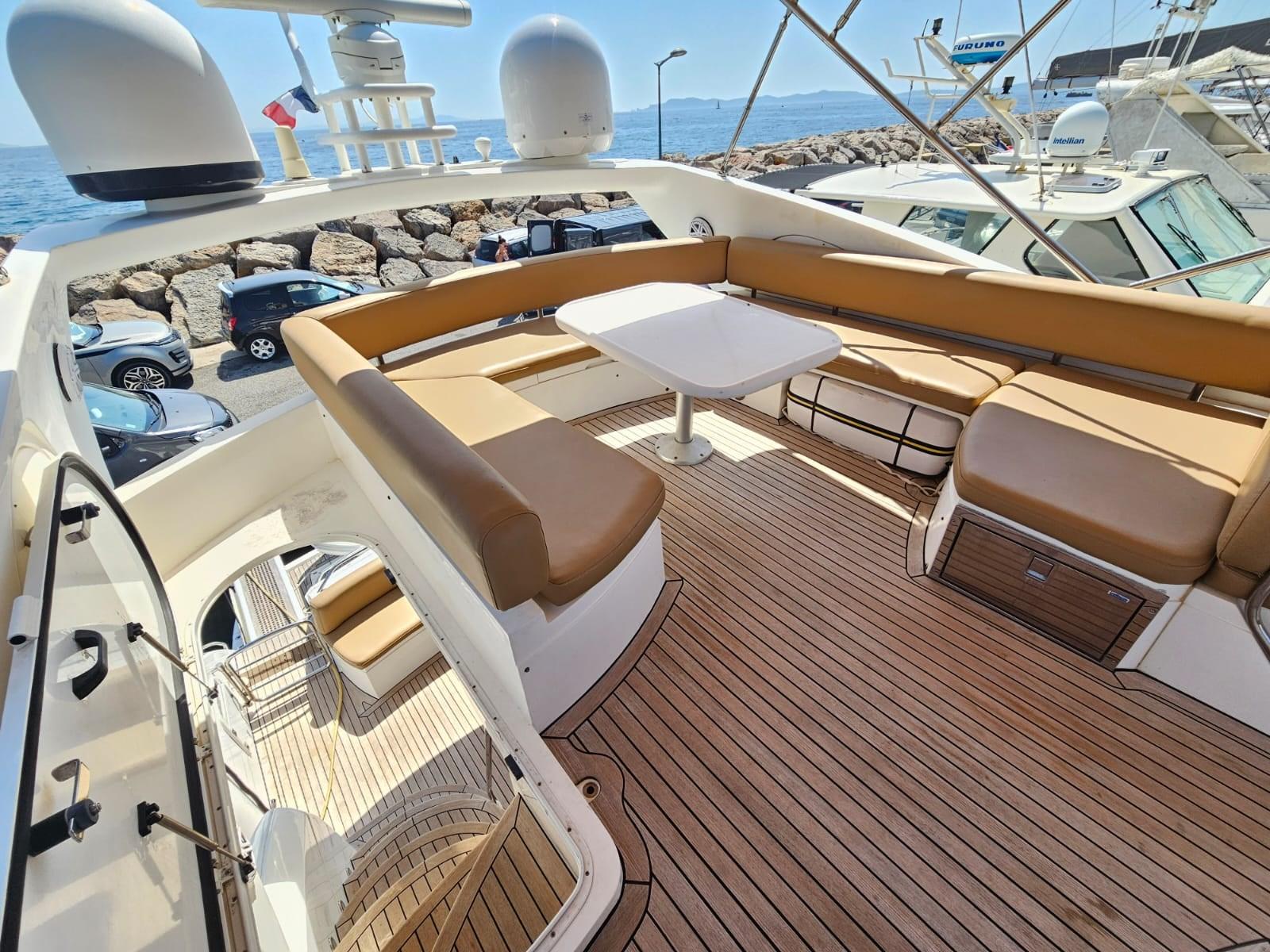 An excellent boat visible in France, equipped, the Sunseeker 60 Fly is richly equipped to offer an incomparable sailing experience: